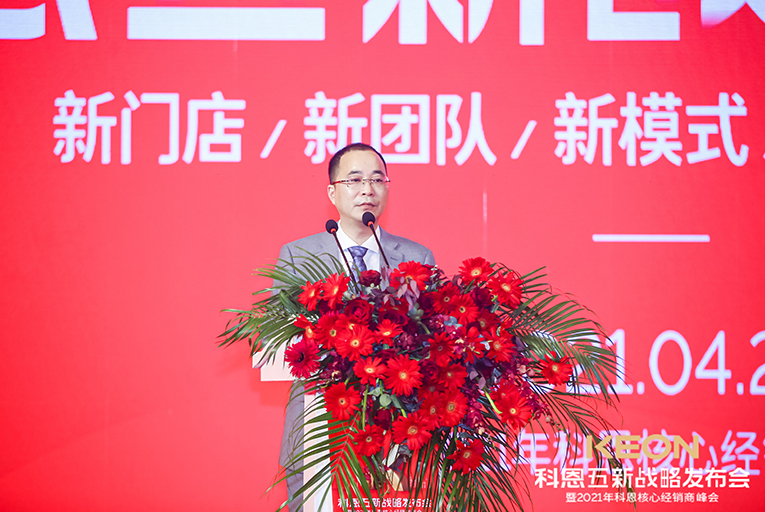 一場震撼全場的沙畫表演后正式會議正式開始,科恩電器董事長俞鋒率先上臺致辭,首先對現(xiàn)場所有人表達(dá)了誠摯的感謝。2021年科恩電器將乘風(fēng)破浪拉開新帷幕,開啟全新篇章。隨后,科恩電器營銷總經(jīng)理趙漢斌發(fā)布“五新戰(zhàn)略”:新門店、新團(tuán)隊、新模式、新目標(biāo)、新未來!不忘初心,方得始終,一起開創(chuàng)新時代、新征程!