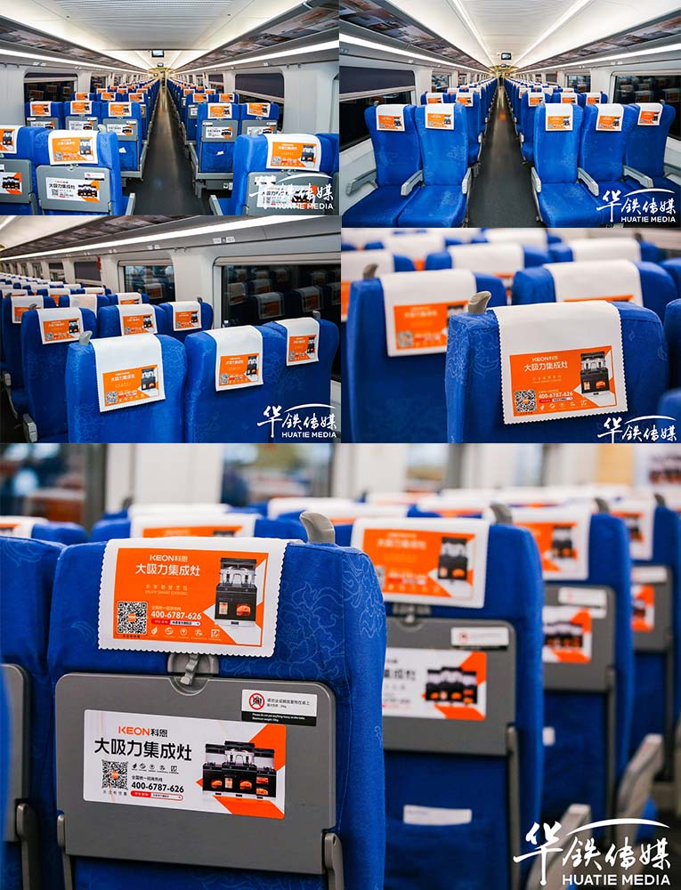 2021年7月,科恩集成灶強勢打響高鐵品牌戰(zhàn)役,全面布局高鐵傳播,為品牌推廣助力加碼,伴隨馳騁的中國高鐵品牌專列,“科恩號”足跡遍布全國,“樂享智慧烹飪”廚房生活理念走進千家萬戶!科恩集成灶高鐵列車充分利用各種常見媒體形式,外車身、頭片、座椅、桌貼、桌板、海報、列車廣播等都顯示了科恩品牌廣告,坐、立、行、視、聽,多元化媒體形式、全方位高頻次,都能感受到科恩品牌文化。
