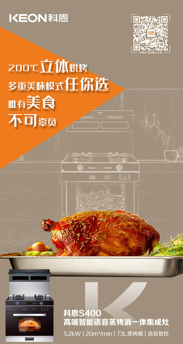 今天,給大家推薦一臺(tái)專(zhuān)治“懶人綜合癥”的集成灶,集成灶十大品牌、廚電行業(yè)十大品牌科恩S400變頻大吸力蒸烤消一體集成灶,上爆炒,下蒸烤,普蒸、強(qiáng)蒸、嫩烤、風(fēng)烤等各種模式一應(yīng)俱全,三分手藝,七分火候,蒸烤烹炸,美食的靈魂與火候區(qū)分不開(kāi),文火均勻,大火猛烈,多種火力調(diào)節(jié)讓廚房小白們也能輕松搞定美食,蒸烤箱只需將食材準(zhǔn)備好放進(jìn)蒸烤箱,選好模式以及對(duì)應(yīng)的溫度、時(shí)間,美食就能信手拈來(lái)。