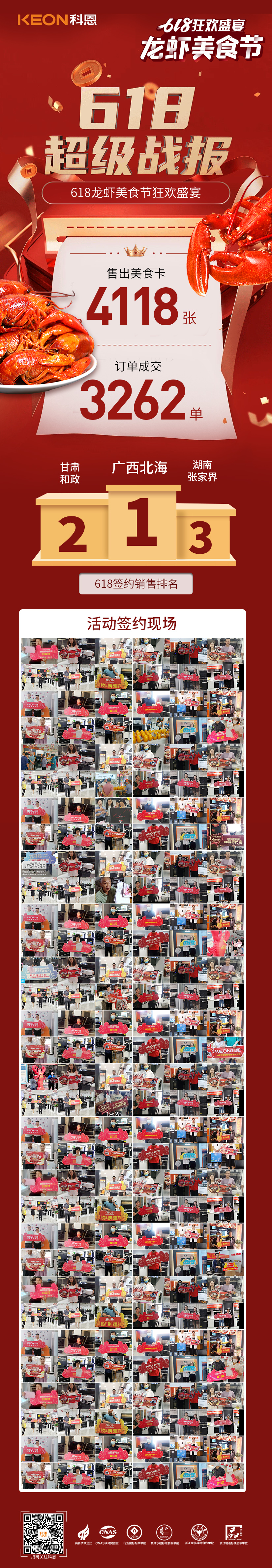 夏日最火的美食非小龍蝦莫屬,科恩集成灶借勢小龍蝦的social熱點,在這個618年中鉅惠大熱之際,以一場為期近30天的龍蝦美食節吹響夏日號角,掀起一陣狂歡浪潮。千城千店,共襄盛舉,全國各地消費者們共赴科恩龍蝦美食宴,隨著6月18日晚直播大抽獎活動的結束,科恩龍蝦美食節,也畫上了一個圓滿的句號。截止6月18日23:59分,科恩集成灶共計售出4118張美食卡,訂單成交3262單,如此優秀成績,充分印證了科恩電器的產品品質和優質口碑!