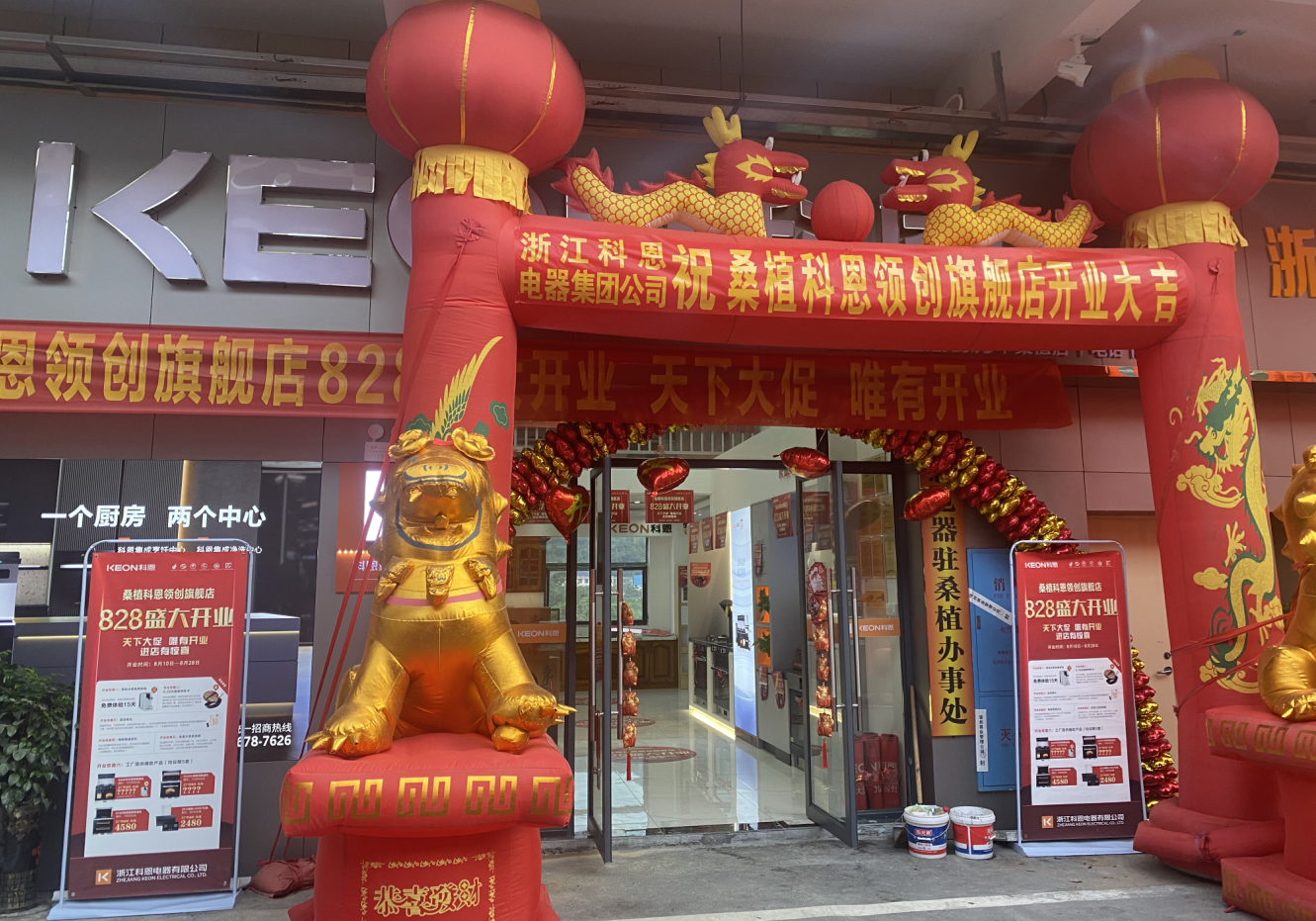 8月28日,科恩桑植旗艦店盛大開業,鉅惠全城,氣氛火爆,現場簽單近40單!開業當天,偌大的門口被祝賀橫幅擠得滿滿當當,開業拱門和兩座金獅坐鎮大門,現場彩旗飄飄,花籃錦簇,滿目紅火!