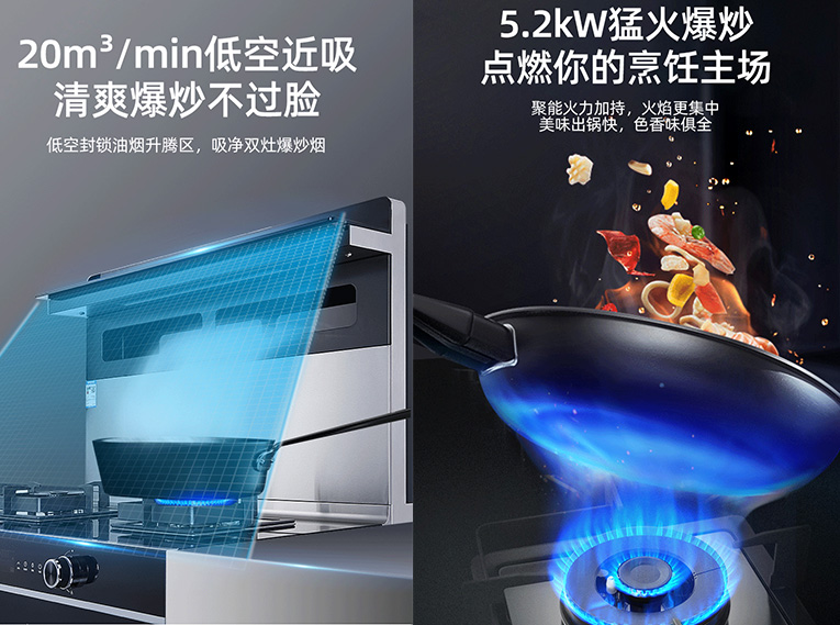 科恩S450左右蒸烤智能語音集成灶全面開啟左烤右蒸新時代,無論你是廚房大廚還是廚房小白,都能一鍵定制蒸烤美食,讓美食如約而至!