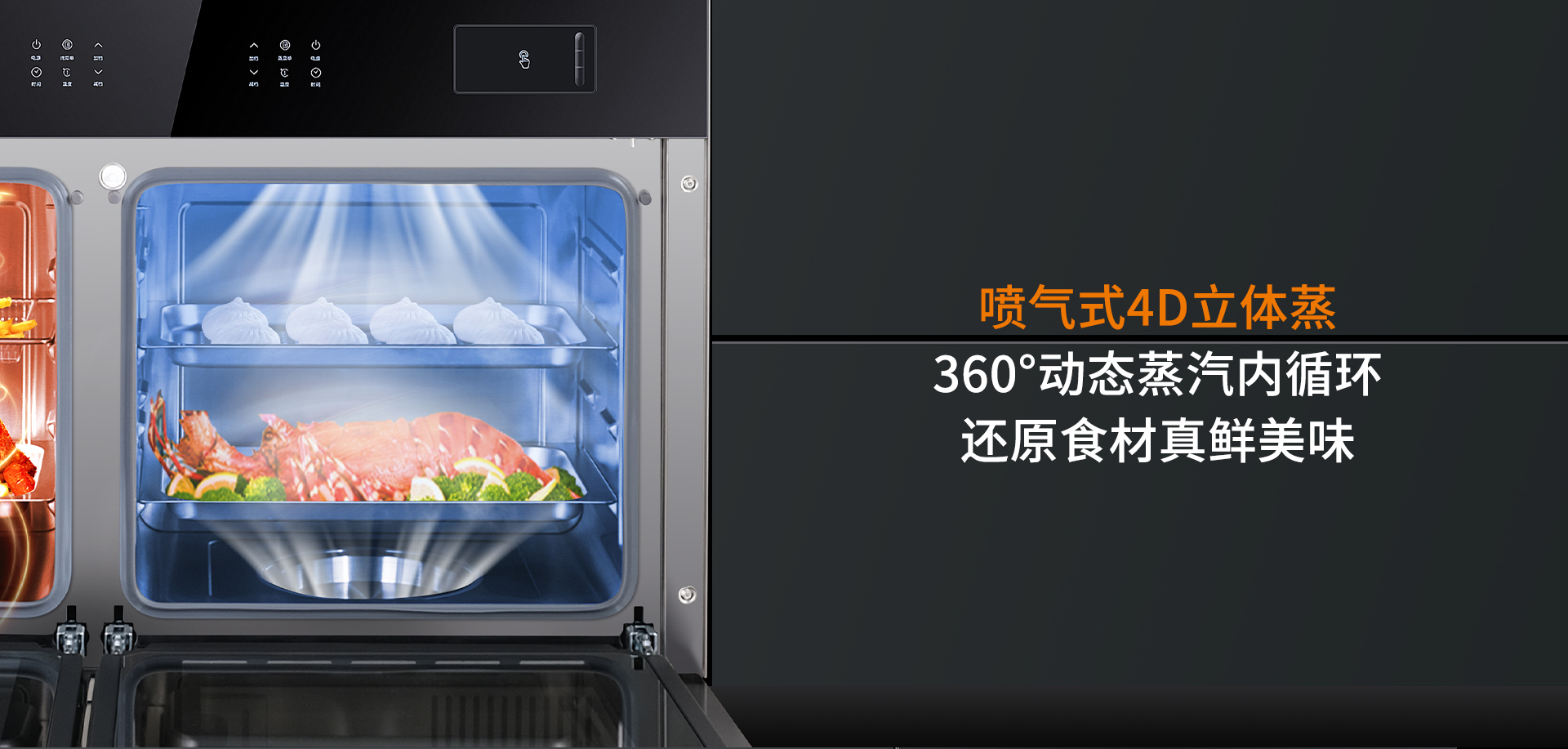 噴氣式4D立體蒸加上360°動態(tài)蒸汽內(nèi)循環(huán),讓食材方方面面、內(nèi)外都均勻受熱,還原食材真鮮美味,讓美味輕松上桌。