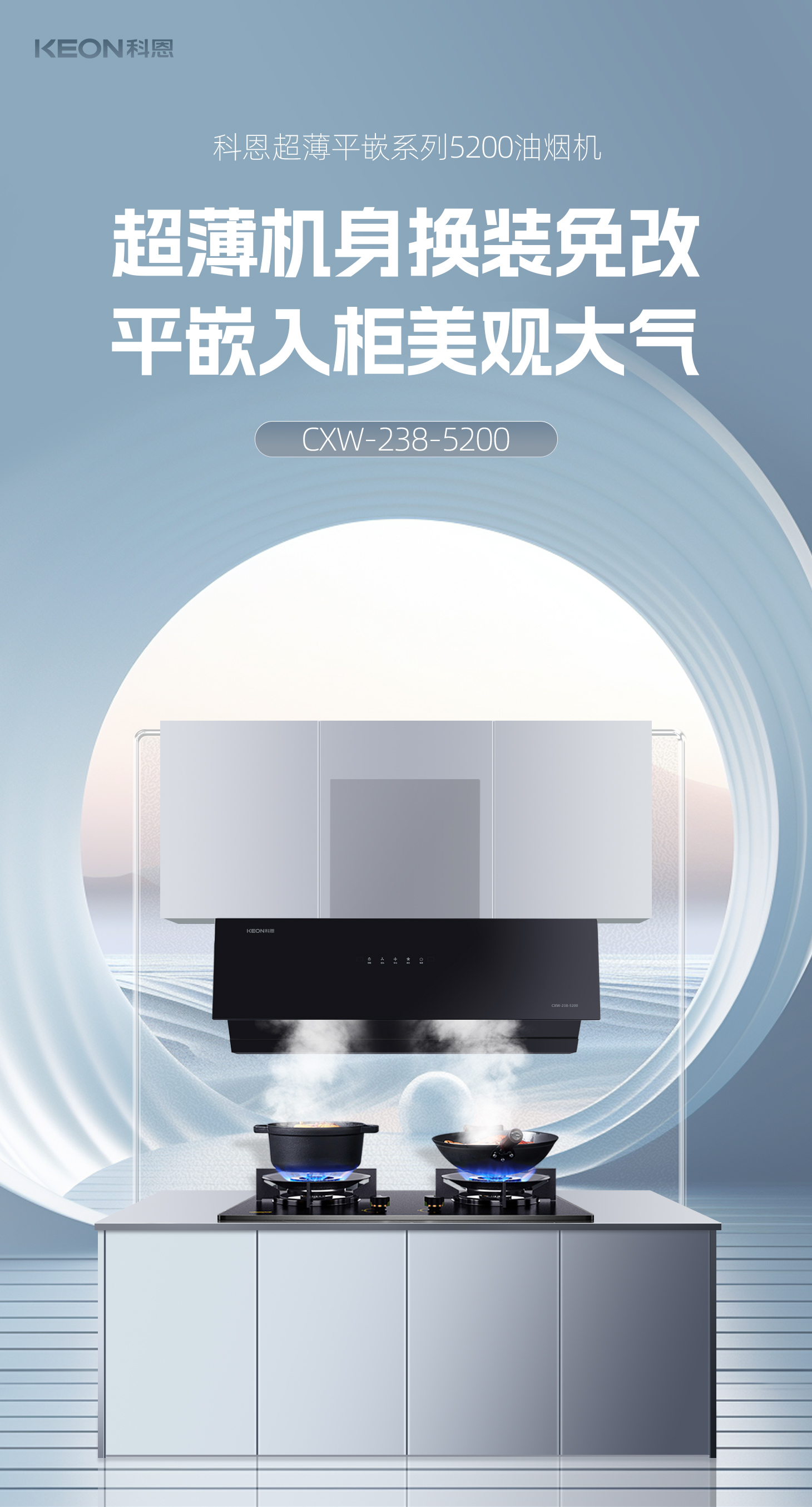 在廚電換新的過程中,常常會遇到各種問題,尤其是油煙機(jī)尺寸不符合,需要大動干戈重裝,讓人十分苦惱。但現(xiàn)在,有了科恩5200超薄油煙機(jī),這些問題都能迎刃而解。