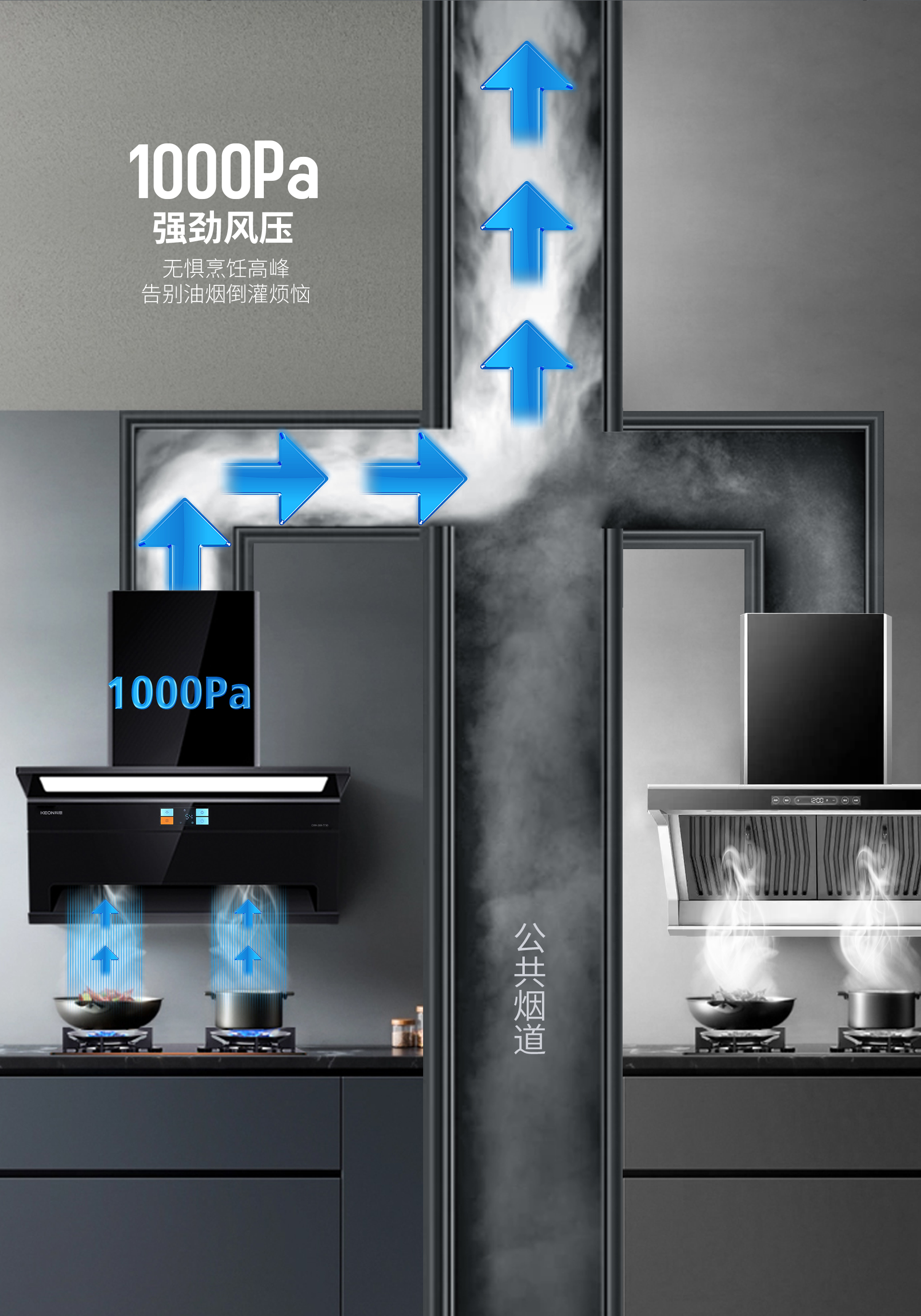 科恩7730豈止于美,它有顏有實力。24m³澎湃大吸力足以應對開放式廚房的油煙挑戰(zhàn),瞬間便能讓廚房空氣恢復清新。其高位頂吸與低位側(cè)吸相結(jié)合的獨特設計,實現(xiàn)了1+1>2的凈煙真實力。下層能夠快速攏煙,上層則有效防止油煙逃逸,確保了全方位的凈煙效果。4+1檔風力可滿足從慢燉、蒸煮到爆炒等各種烹飪需求,無論何種烹飪方式,都能輕松應對。搭配1000Pa強勁風壓更是無懼烹飪高峰時段,徹底告別油煙倒灌的煩惱,讓廚房始終保持清新宜人的環(huán)境。