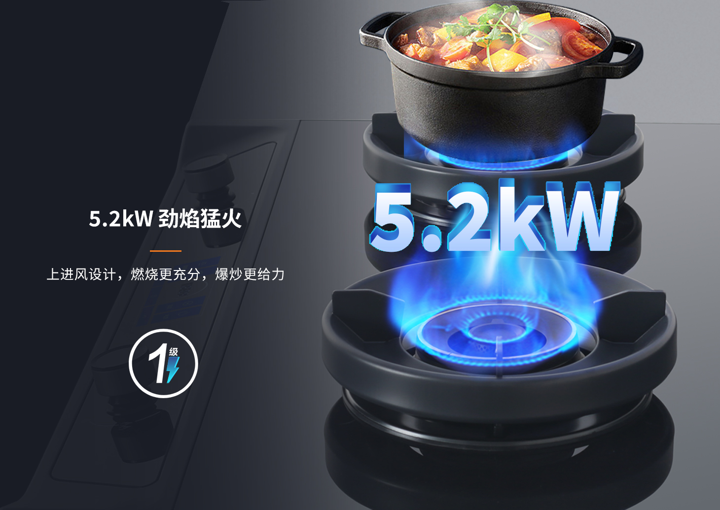 煙灶聯動,凈煙無憂。免除手忙腳亂操控,科恩集成烹飪中心,煙灶智控互聯,開火即排煙。5.2KW藍焰猛火系統,實現快速升溫,煎炒炸烙樣樣拿手,廚房小白也能變身中華小當家。