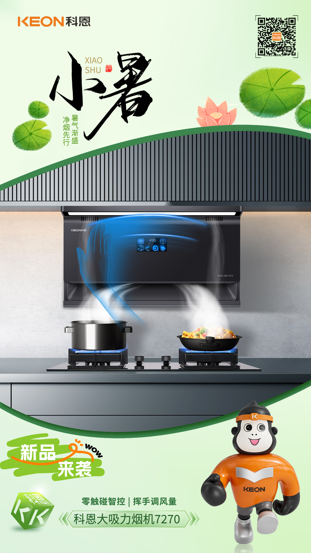 凈煙守護(hù),暑夏清涼。從凈煙到清潔,從性能到顏值,科恩7270煙機(jī)用硬核實(shí)力重塑烹飪體驗(yàn)。讓爆炒的煙火氣,化作生活的詩情畫意,讓每一次下廚,都成為清涼愜意的慢時(shí)光!