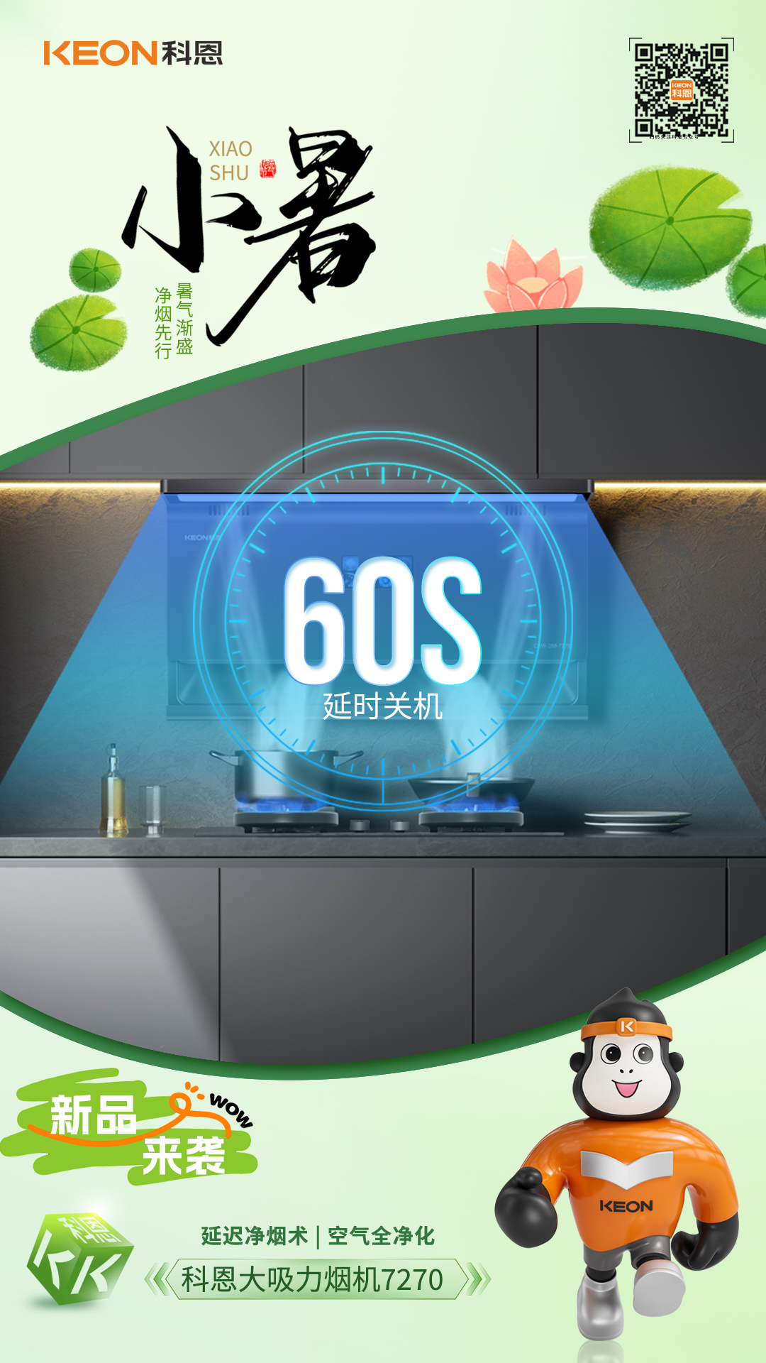 蟬鳴初起,熱浪翻涌。小暑時(shí)節(jié)廚房成高溫重災(zāi)區(qū),油煙升騰中包裹著暑氣更顯煩躁,科恩7270煙機(jī)攜25m³/min暴風(fēng)吸力來襲,為廚房筑起清涼防線,讓凈煙快一步,生活慢享受。