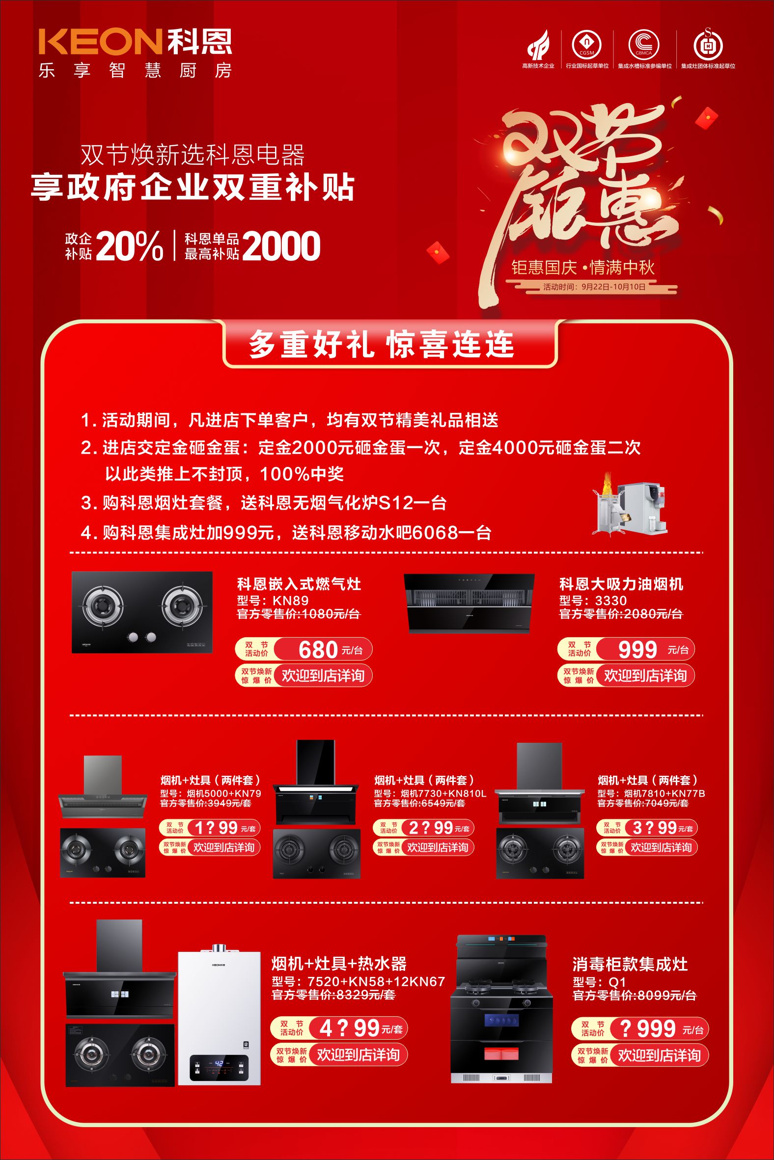 科恩始終以高品質(zhì)產(chǎn)品和貼心服務(wù),為消費者打造智能、高效的廚房體驗。此次雙節(jié)活動福利豐厚,可享多重禮遇!想給廚房煥新,想讓家宴更出彩,想把實用好禮帶回家的朋友們,趕緊抓住這難得的機會,前往科恩廚電門店參與活動。讓科恩廚電陪你度過一個歡樂、溫馨的雙節(jié),開啟高品質(zhì)廚房生活新篇章!