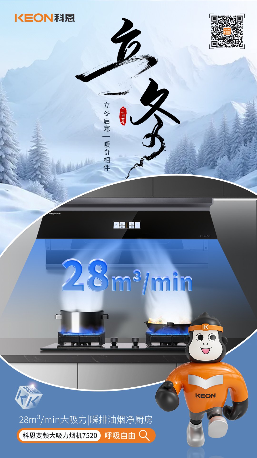 舊廚煥新,暖廚無憂。立冬暖味需好器,廚房煥新正相宜,科恩電器全程相伴,打造智能健康新廚房。讓廚房暖起來,讓美味不等待,共度暖冬好食光。