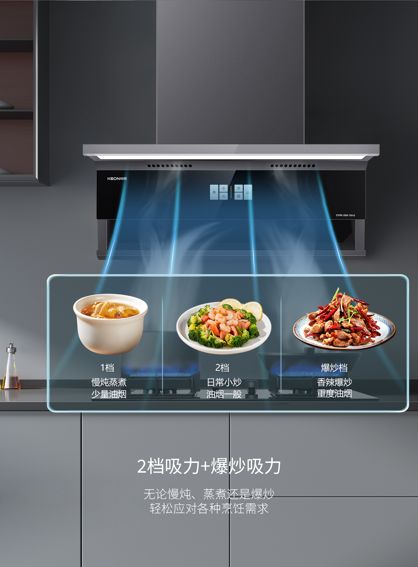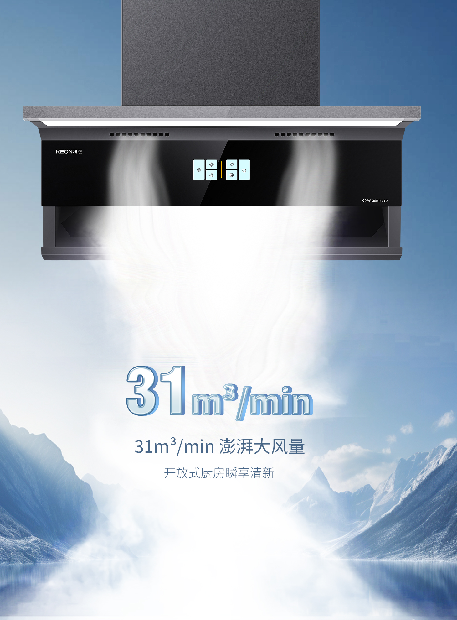 凈煙神速 顏值擔當新年爆炒,油煙無蹤3秒清場,全域攏煙1350Pa變頻風壓,排煙順暢2.5cm輕薄機身冰川灰鑲邊天鵝頸設計,釋放開闊空間揮手智控,凈煙不沾油污易潔省心 健康相伴特氟龍工藝,油污不粘智旋清洗,吸力持久強勁3分鐘延時關機,余煙盡除IP67全景天幕,護眼清晰模塊化觸控,操作直觀簡單0.5立方大空間,翻炒不碰頭