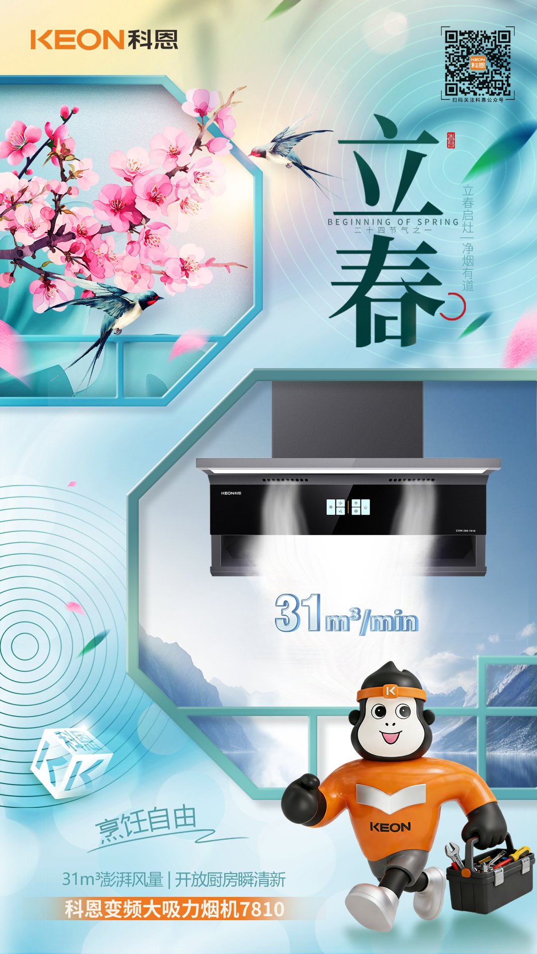 立春啟灶,凈煙有道。新綠破寒時,廚香伴清歡,科恩煙機(jī) 7810,以立春煥新之姿,重構(gòu)「無煙廚房」的烹飪美學(xué),讓每一次掌勺都成為自由呼吸的享受。