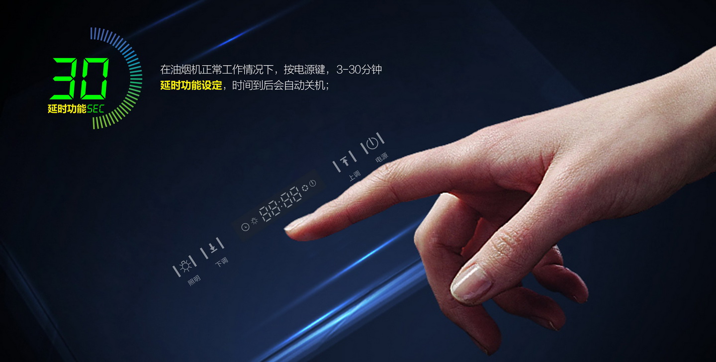 在油煙機正常工作情況下,按電源鍵,時間到后會自動關機。