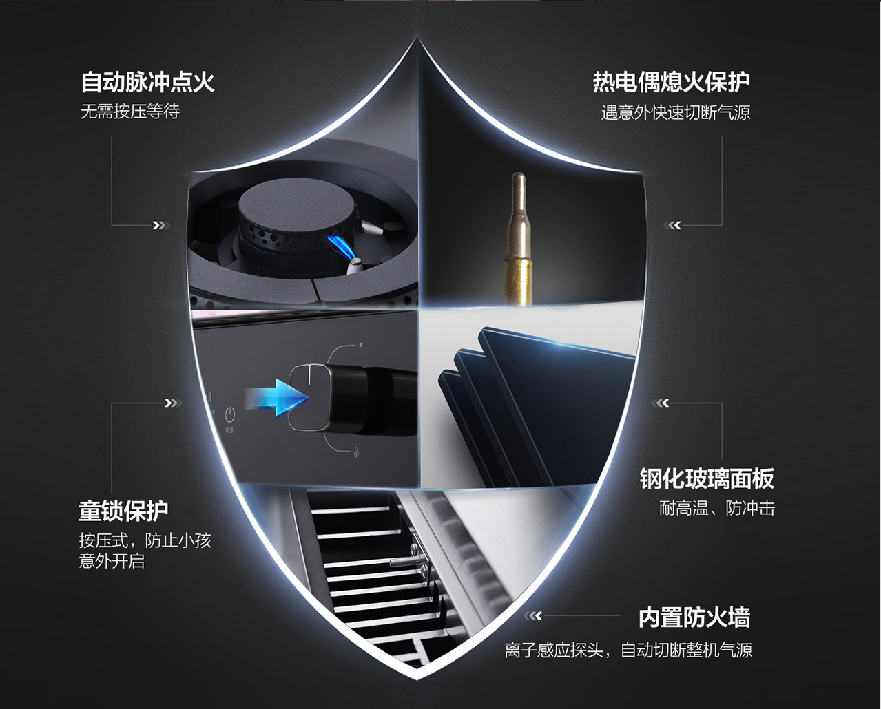 8MM加厚黑晶防爆鋼化玻璃灶臺面板,外觀時尚,易潔易打理。