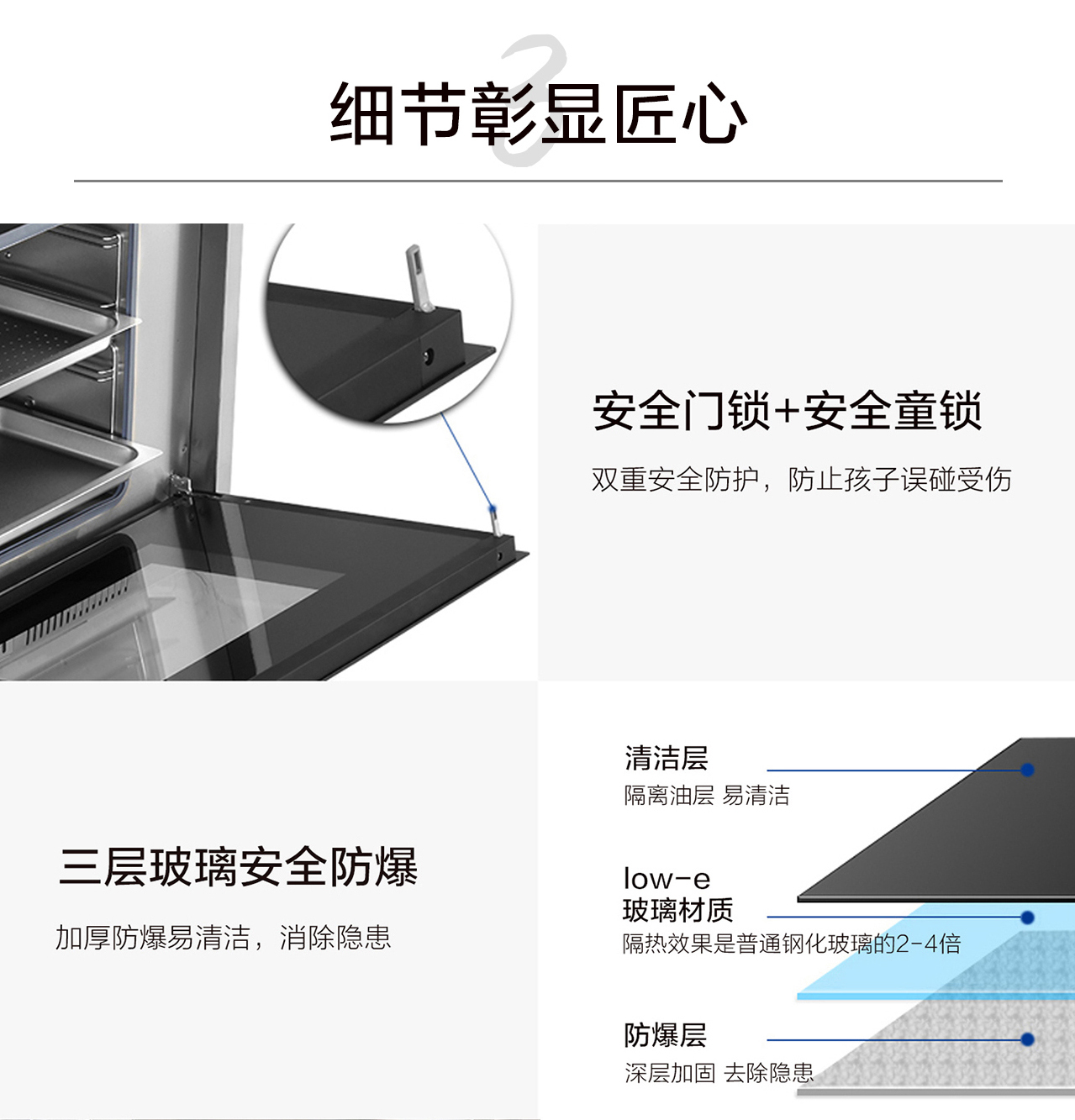 箱門中間層采用low-e玻璃材質,隔熱效果是普通鋼化玻璃的2-4倍。