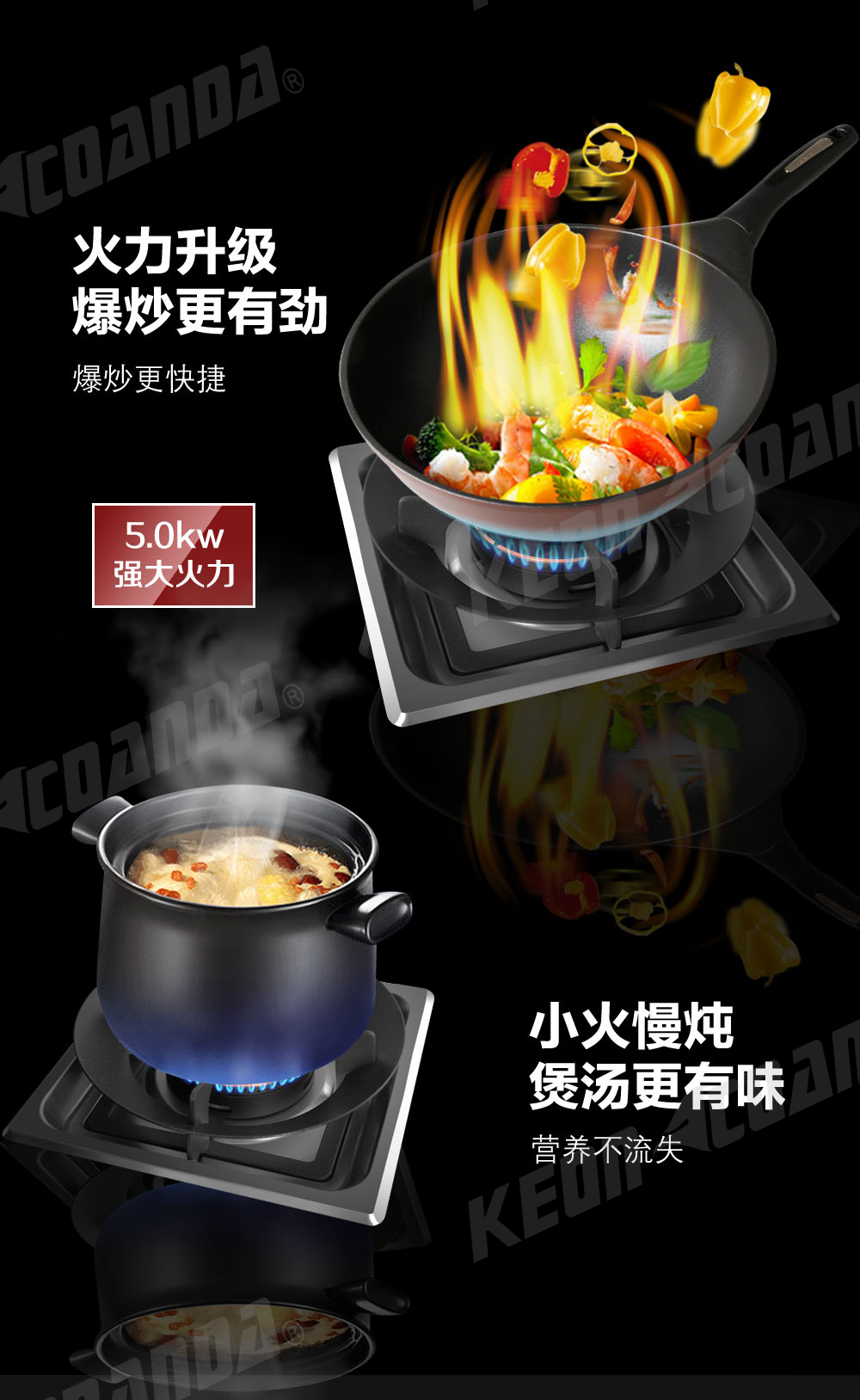 5.0KW火候,大火夠猛,小火更穩,爆炒更舒心