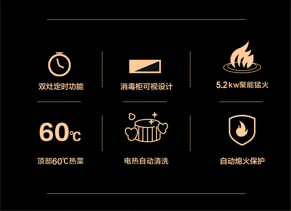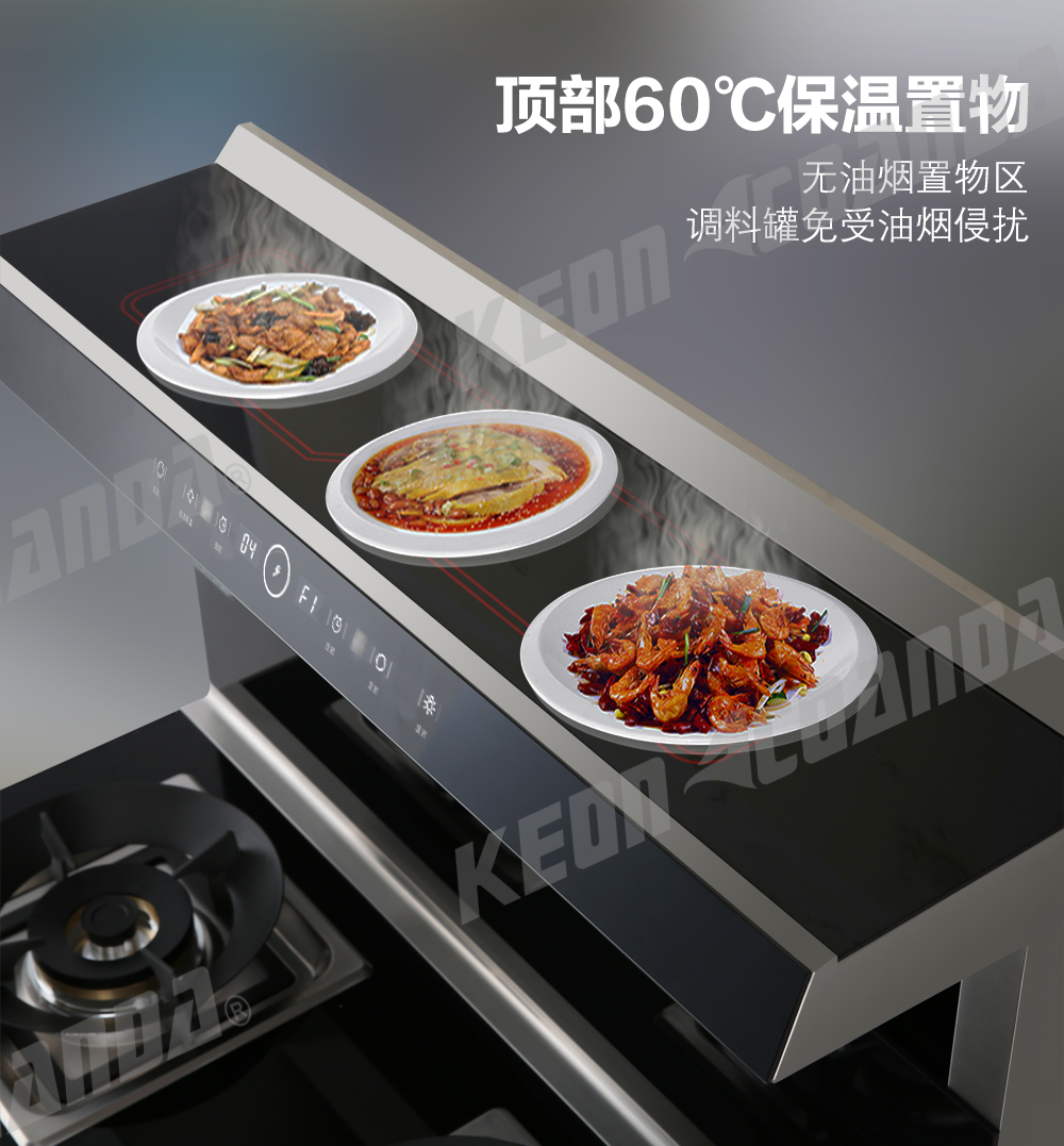 頂部60℃保溫置物功能,無油煙置物區,調料罐免受油煙侵擾