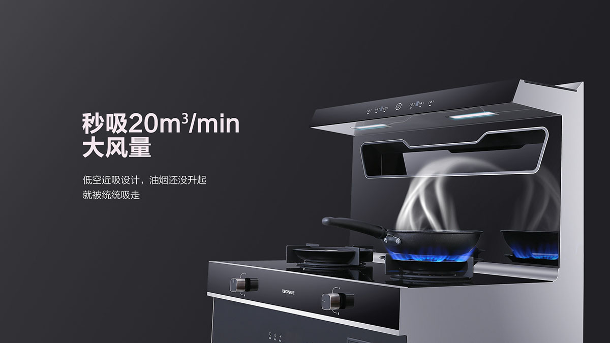 低空近吸技術,緊鎖升騰油煙不上臉,吸煙快人一步,油煙無處可逃