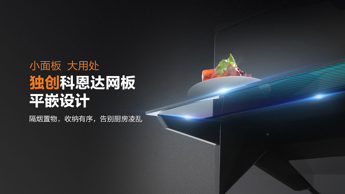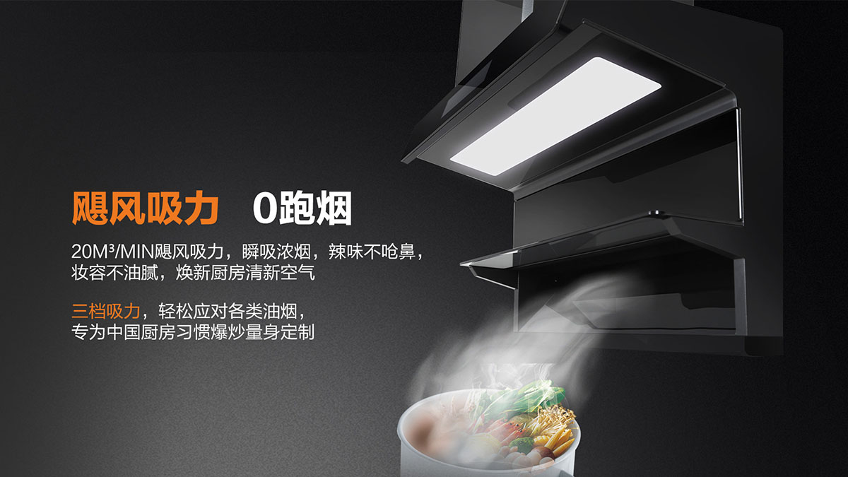 獨特黃金吸煙角,二次冷凝板內傾設計,油煙不過臉