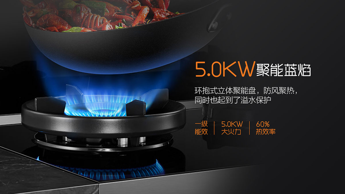 5.0KW大火力,左灶120min 定時功能,多檔火力調節