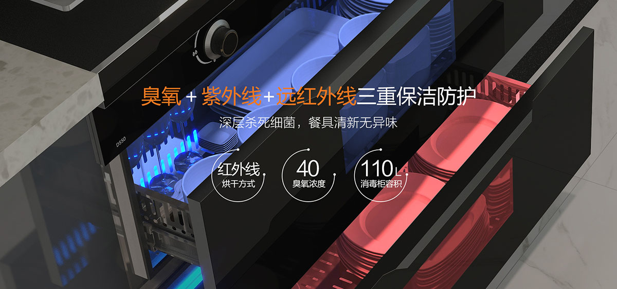 三重保潔防護,臭氧+紫外線+紅外線