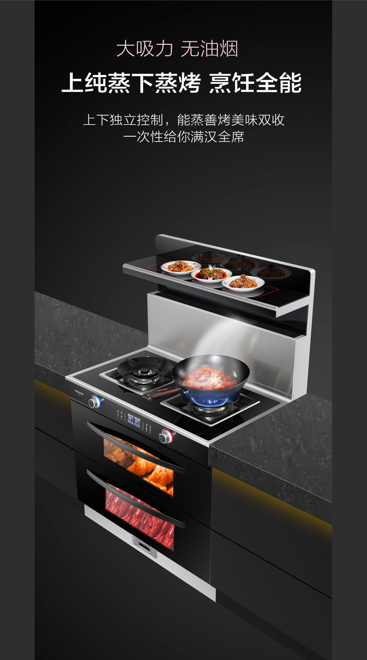 • 上下獨立控制,蒸善烤美味雙收,一次性給你滿漢全席