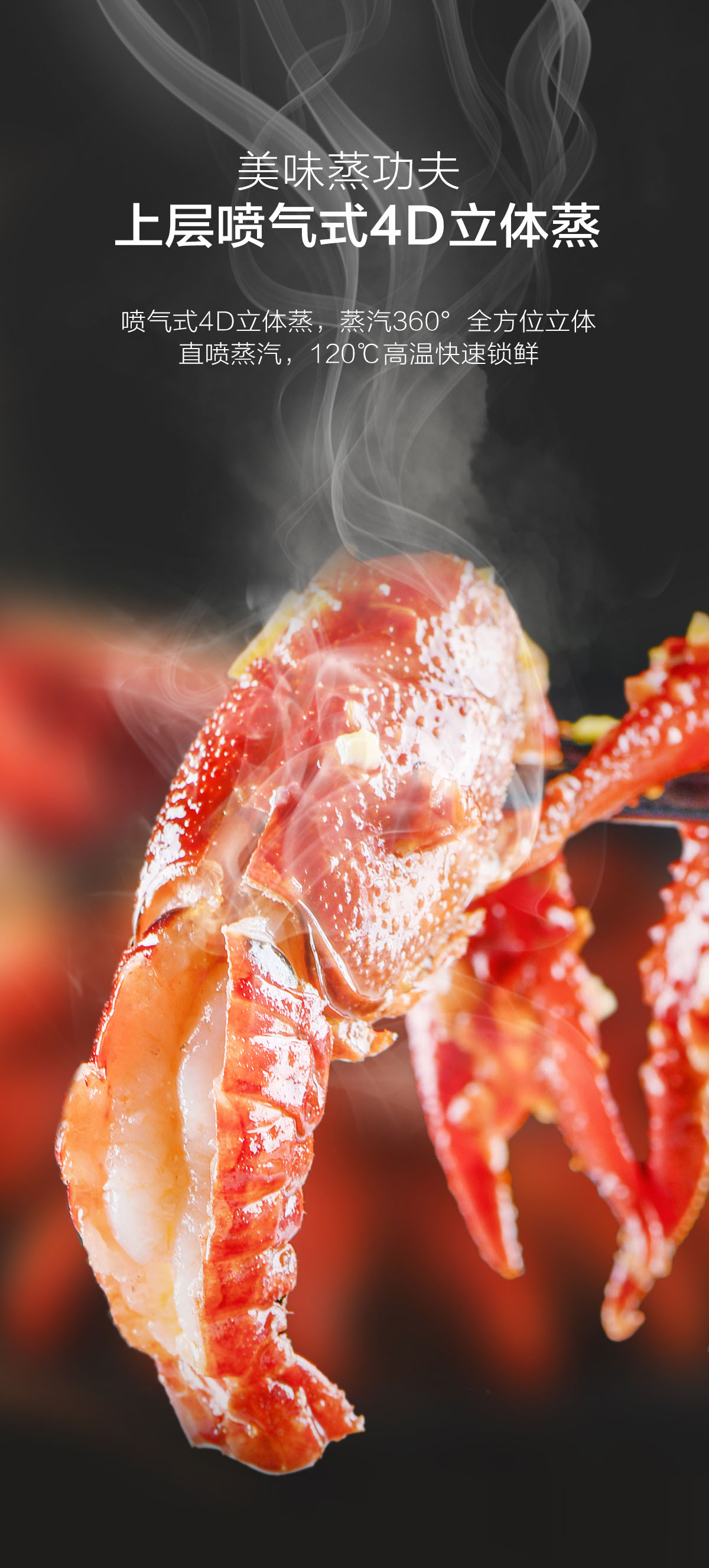 • 噴氣式4D立體蒸,蒸汽360°包裹食材