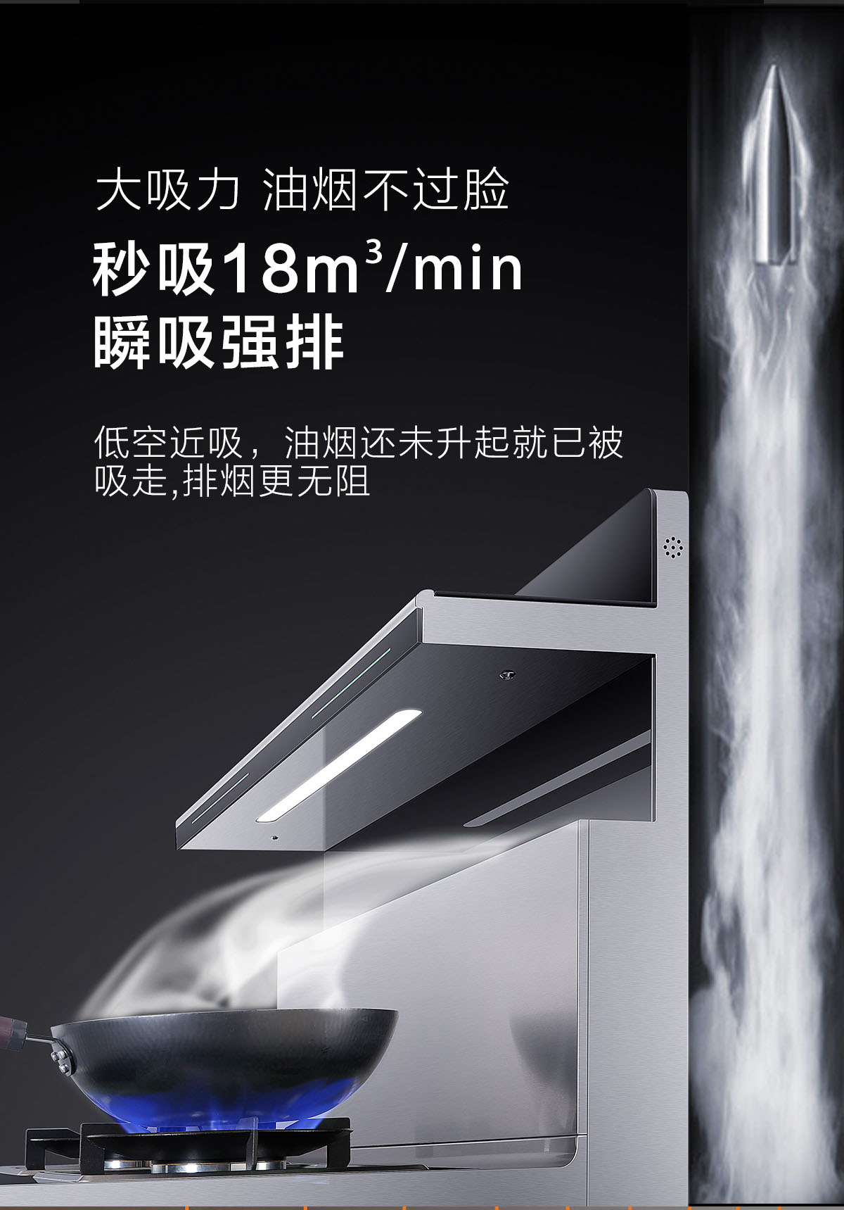 • 18±10%m3強力瞬吸,濃煙瞬吸吸凈