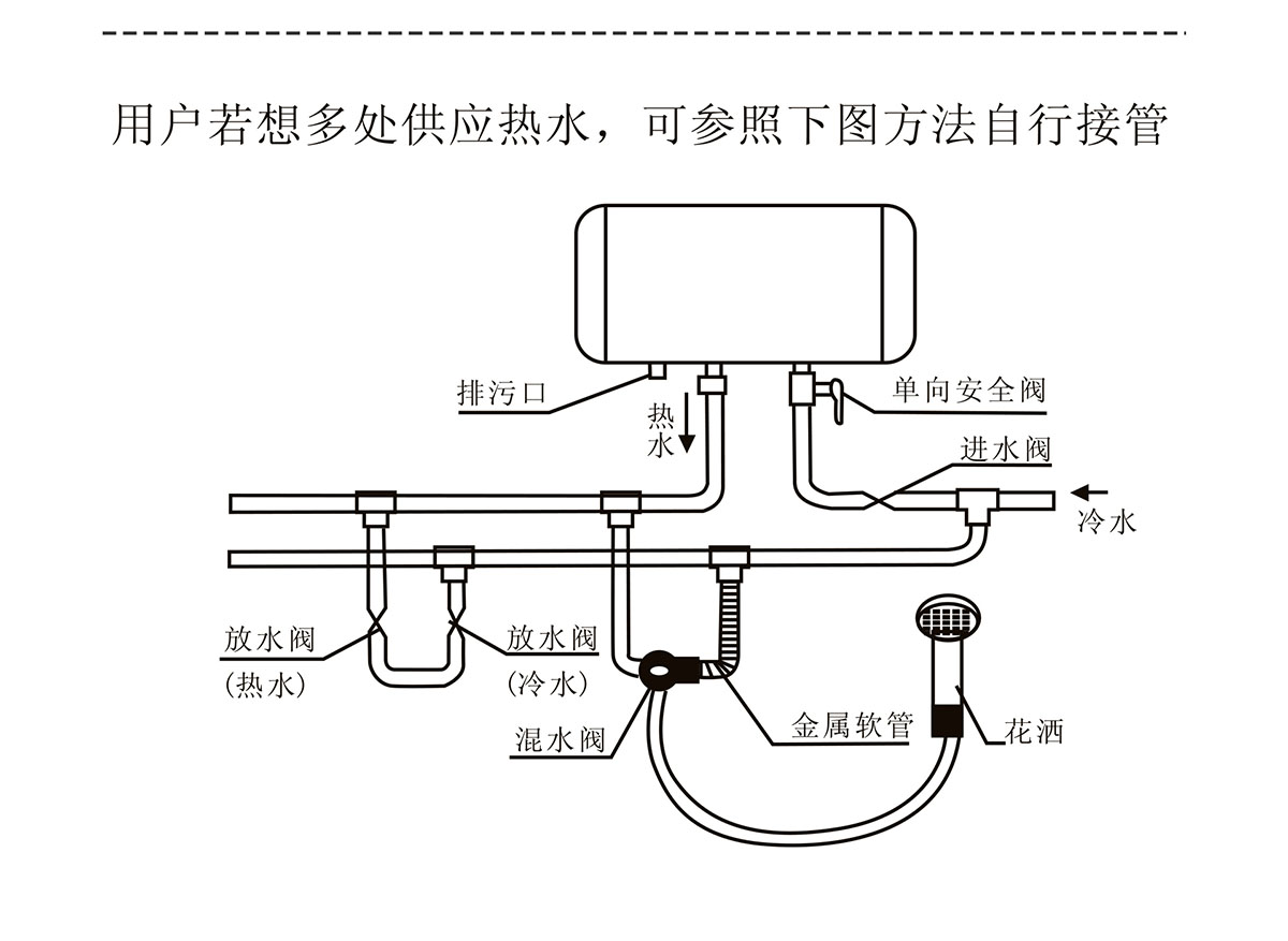 適應水壓范圍廣,熱水容量大,可同時供給多個用水點用水