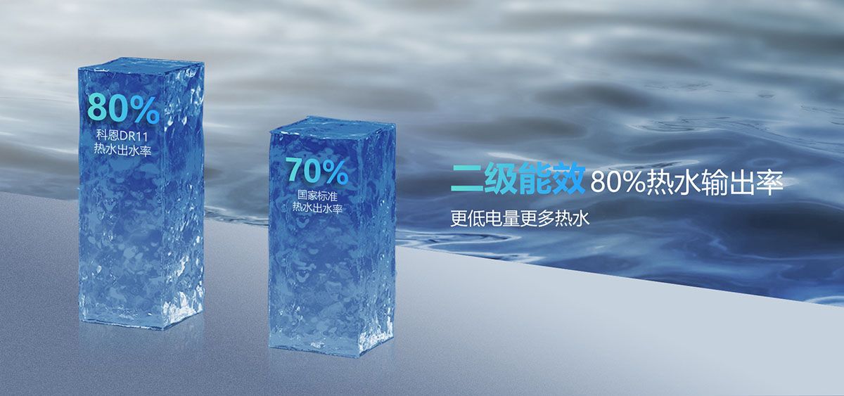 二級能效80%熱水輸出率,更低電量更多熱水