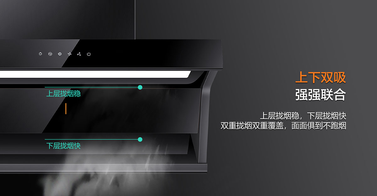 上下雙吸,下強吸,上快攏,強強聯合,油煙0逃逸