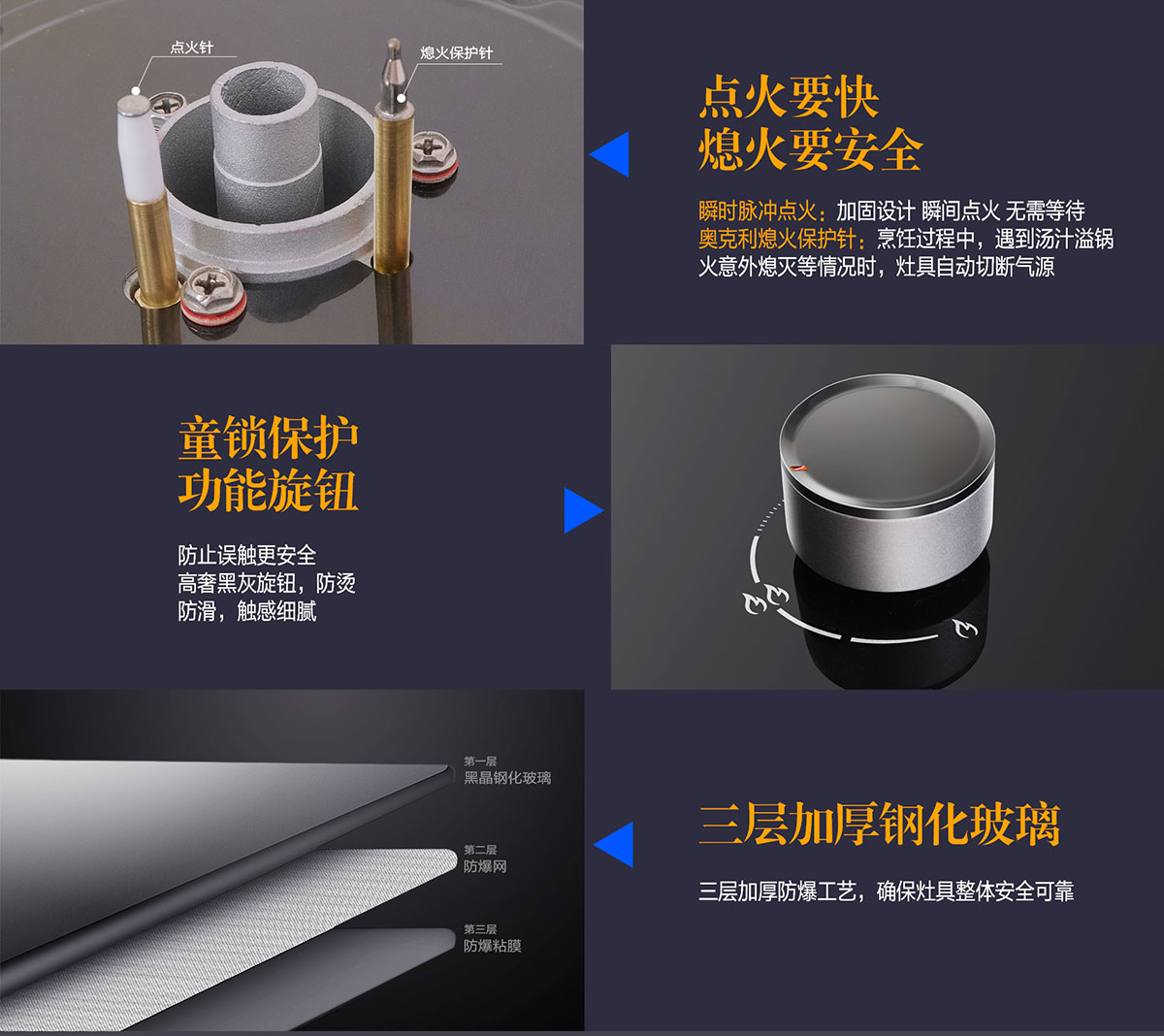 • 奧克利意外熄火保護針,自動切斷氣源,保障安全