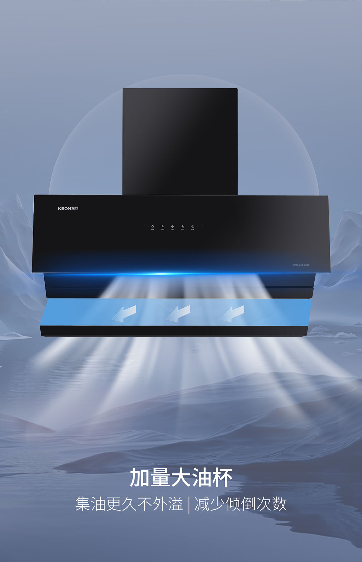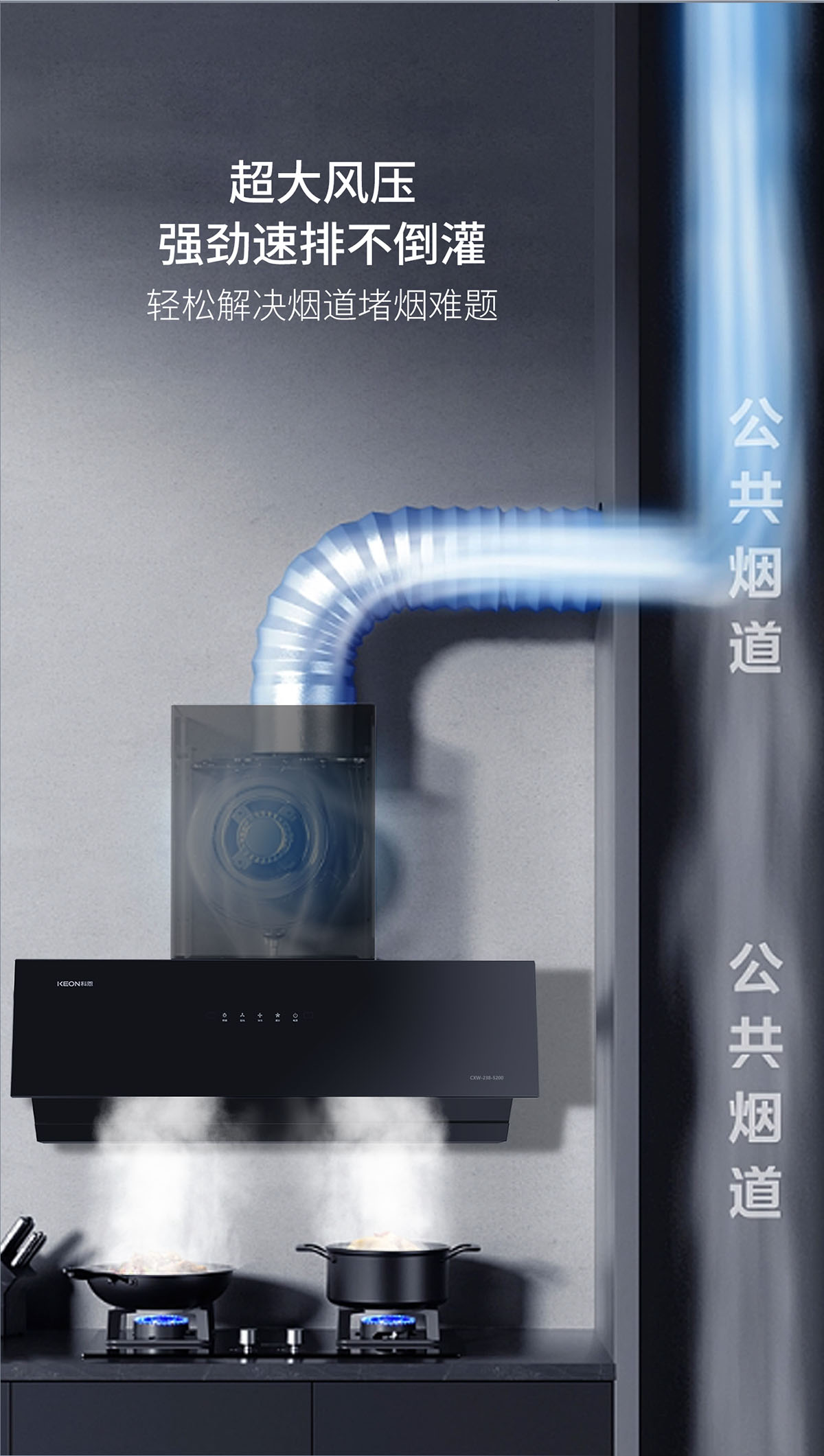23m³/min颶風吸力,瞬吸油煙,打造無煙廚房