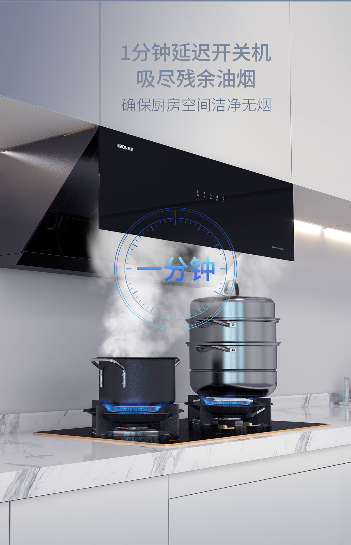 1分鐘延時關機,吸盡烹后殘余油煙