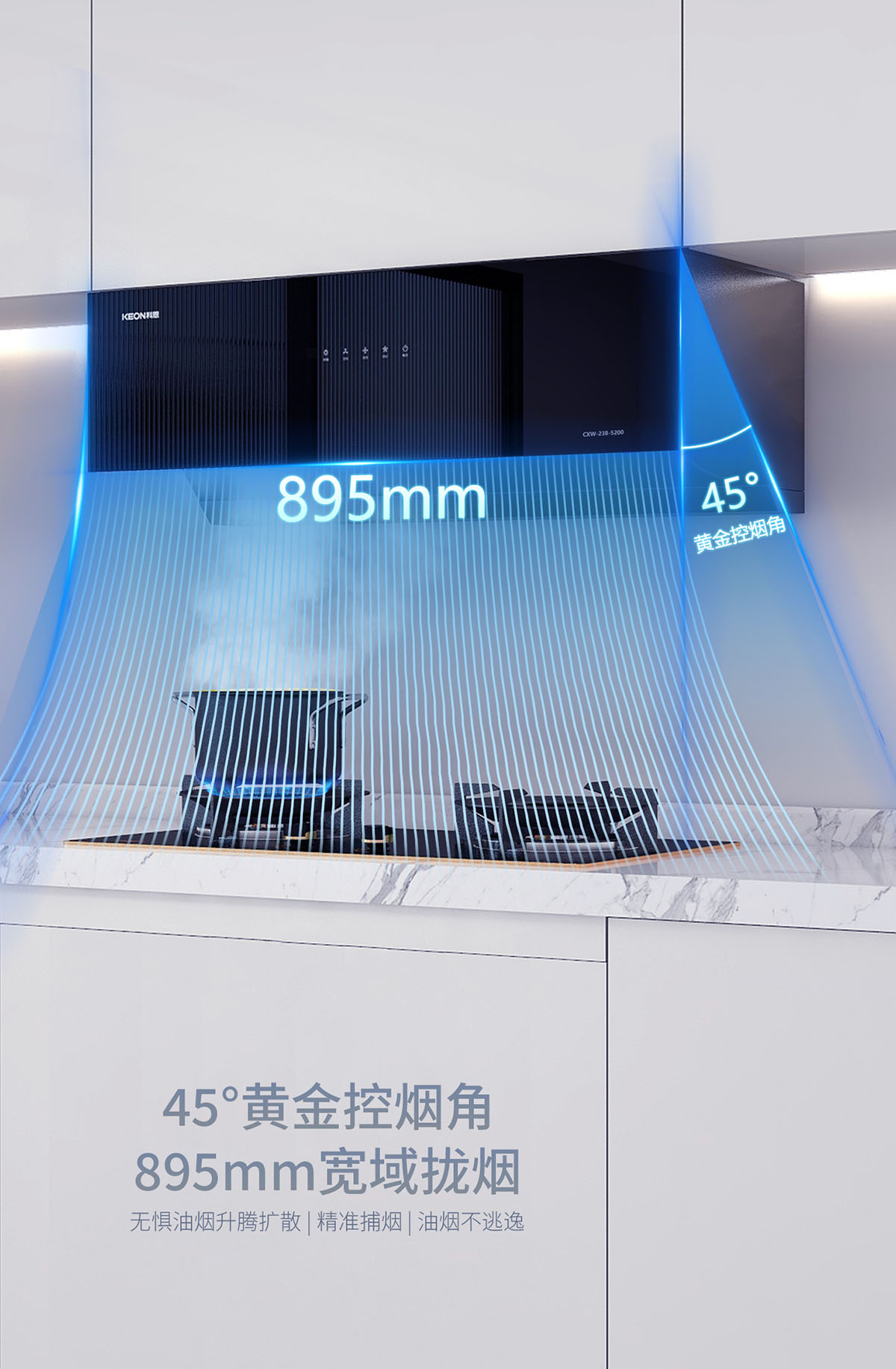 智啟式大隔煙屏,黃金控煙角設計,油煙不逃逸