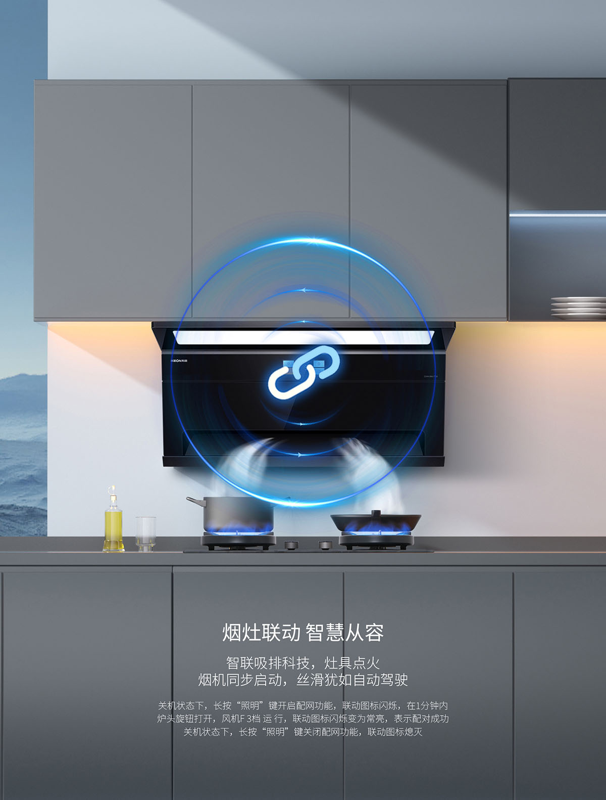 風隨火啟,煙灶聯動智慧從容,智聯吸排科技