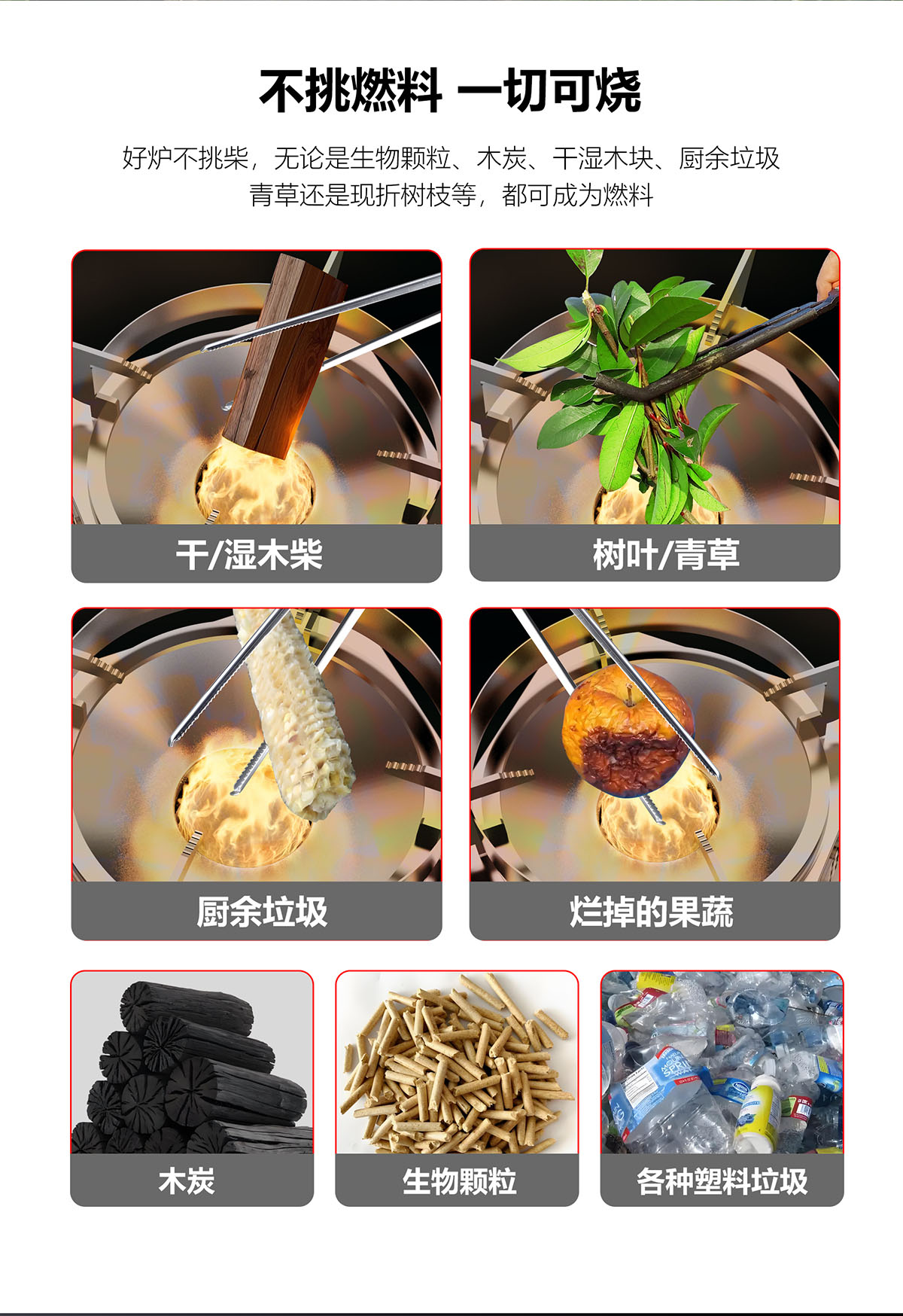 好爐不挑柴,一切固體皆可燃燒