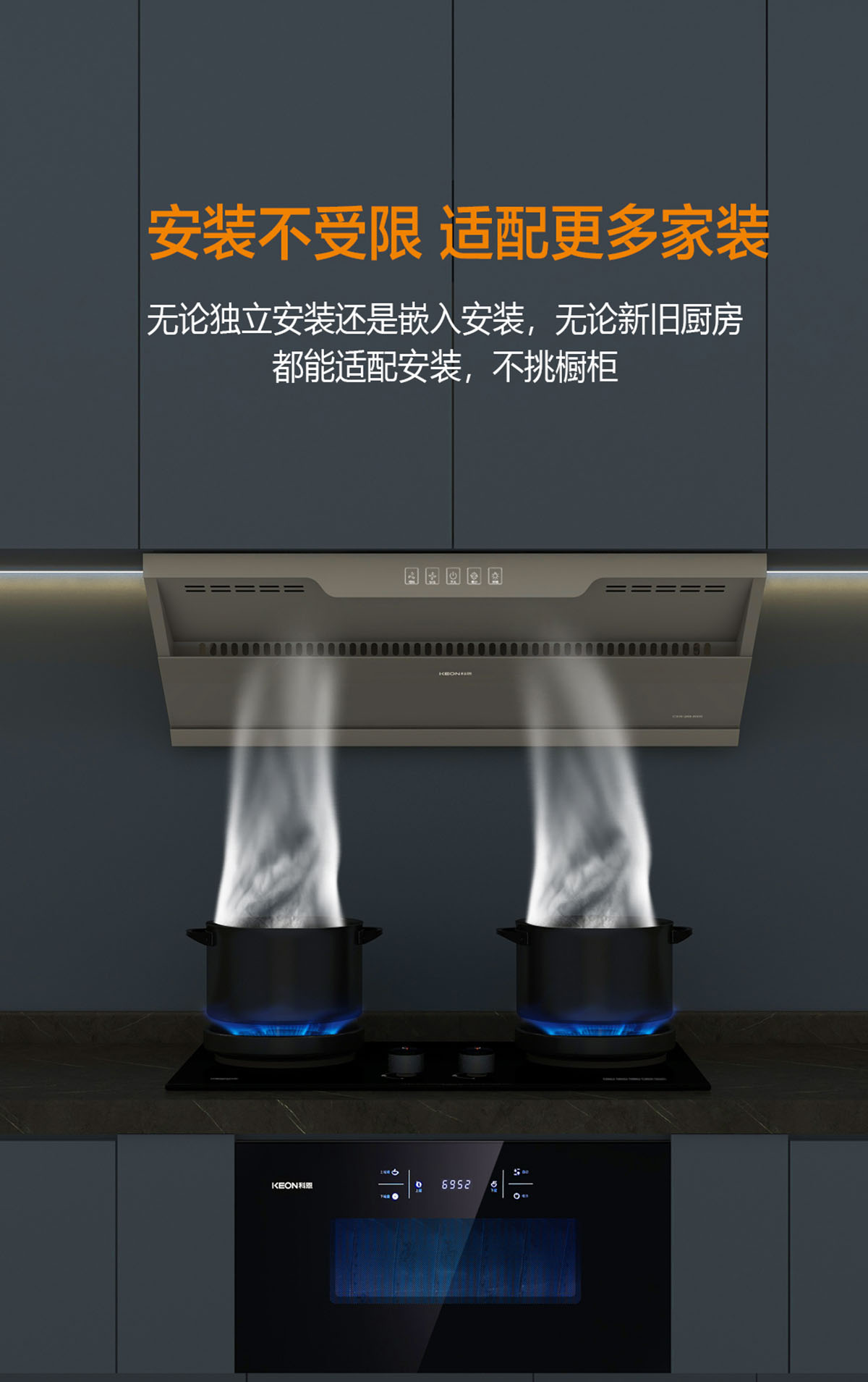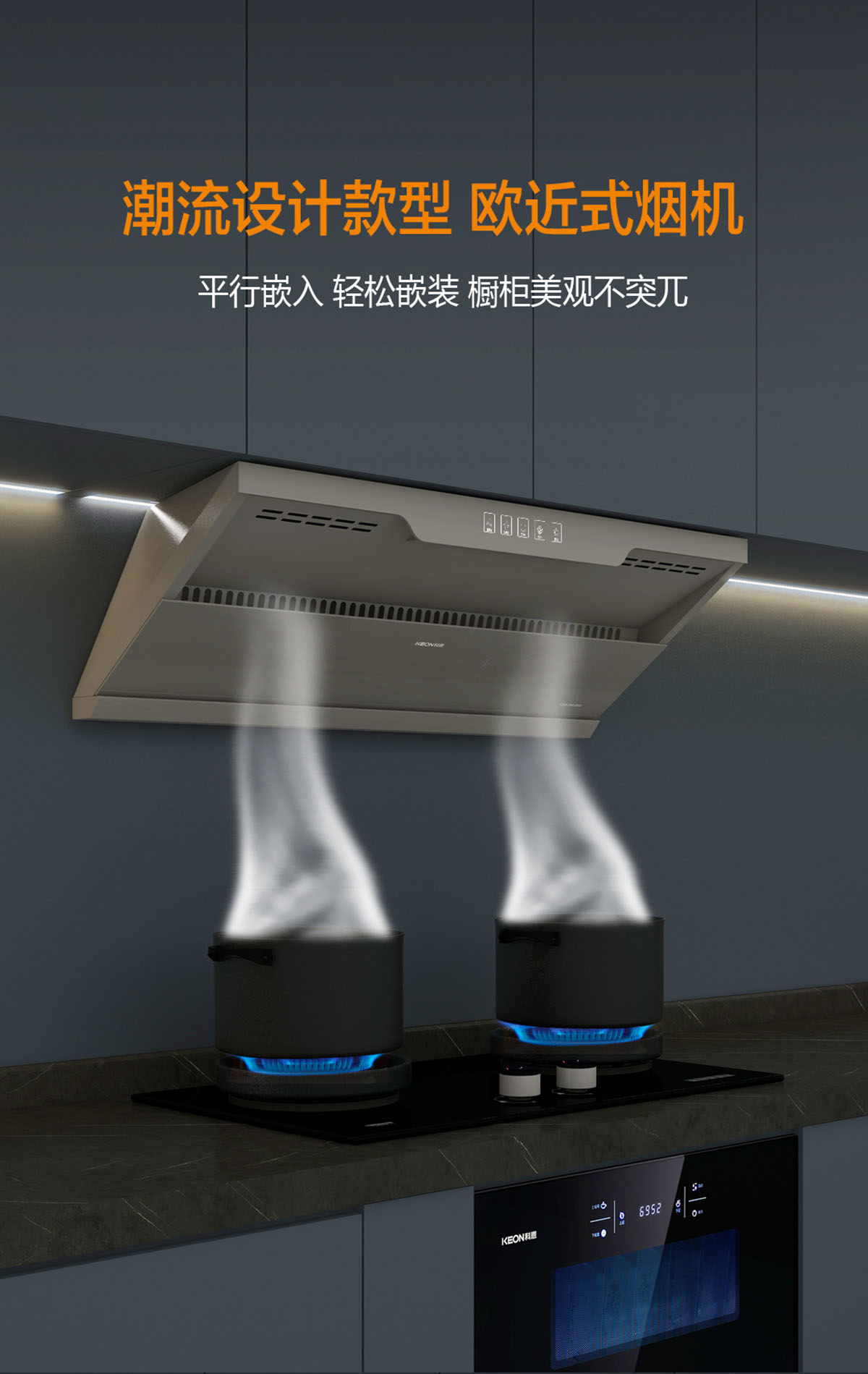 歐近式煙機,平行嵌入,輕松嵌裝,櫥柜美觀不突兀