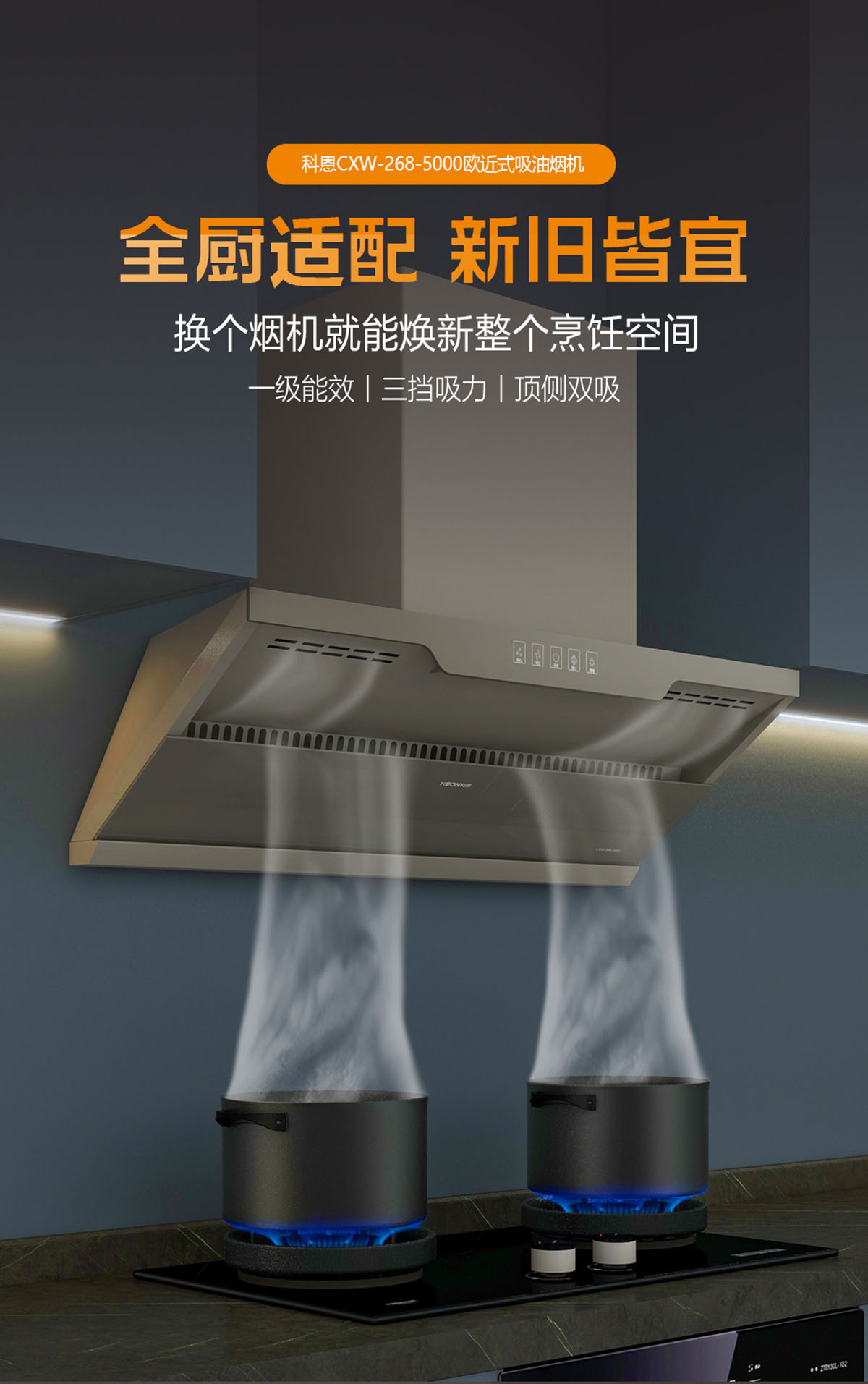黃金控煙勁吸設計,攏煙面積增加50%,油煙0逃逸