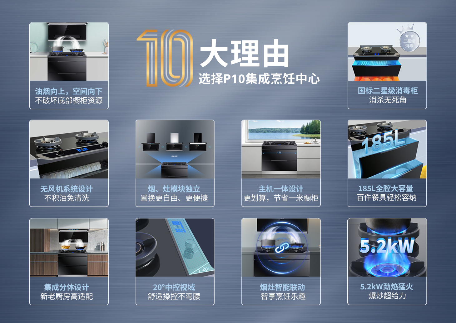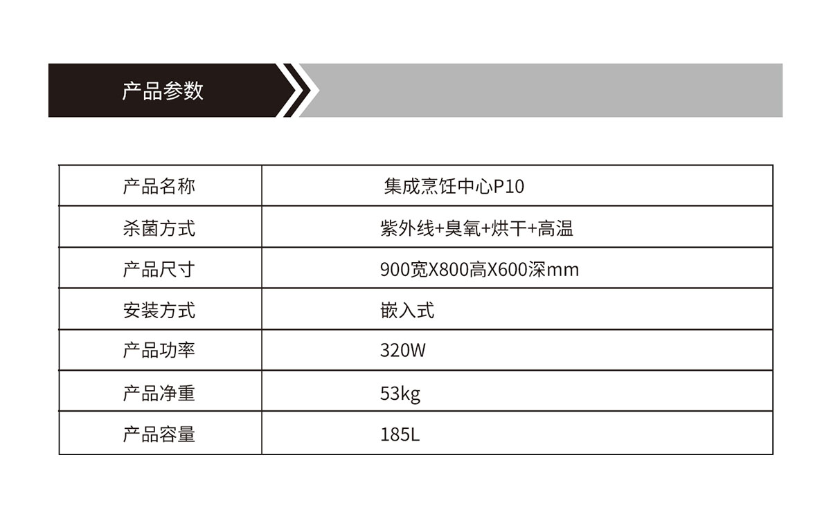 產品型號:烹飪中心P10(大雙抽消灶款)