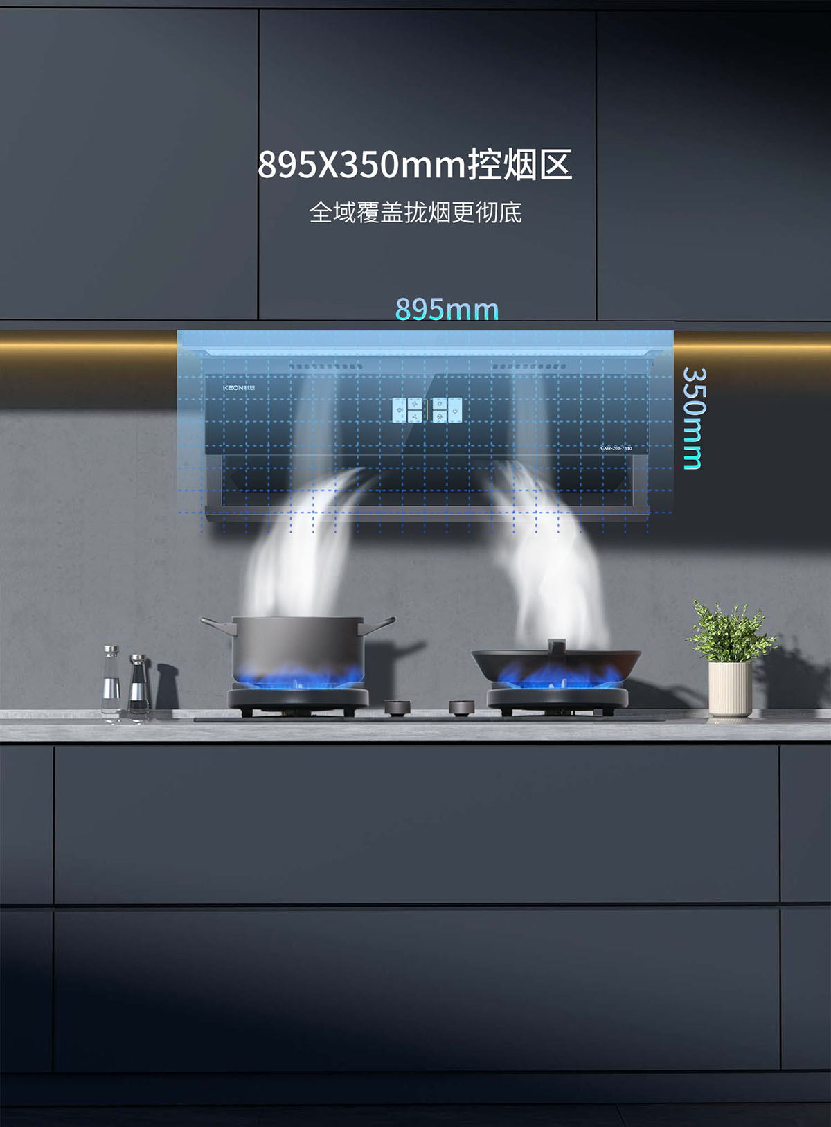 895X350mm控煙區(qū),全域覆蓋攏煙更徹底