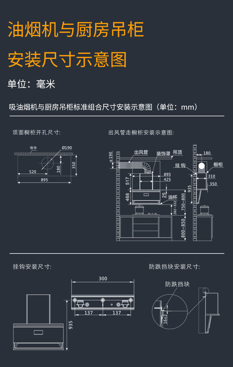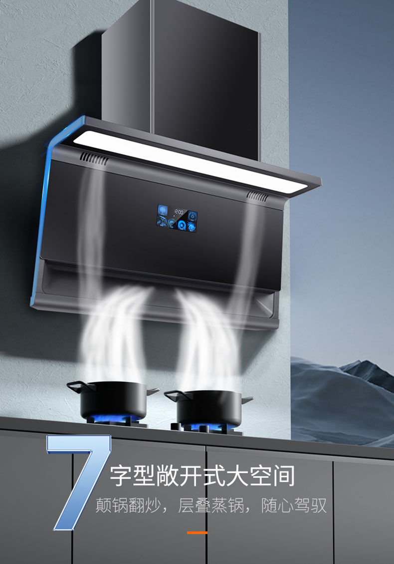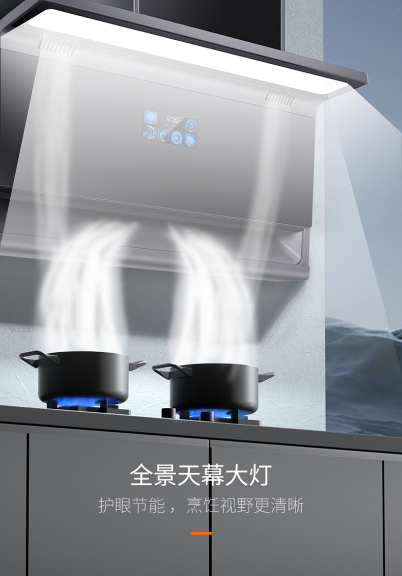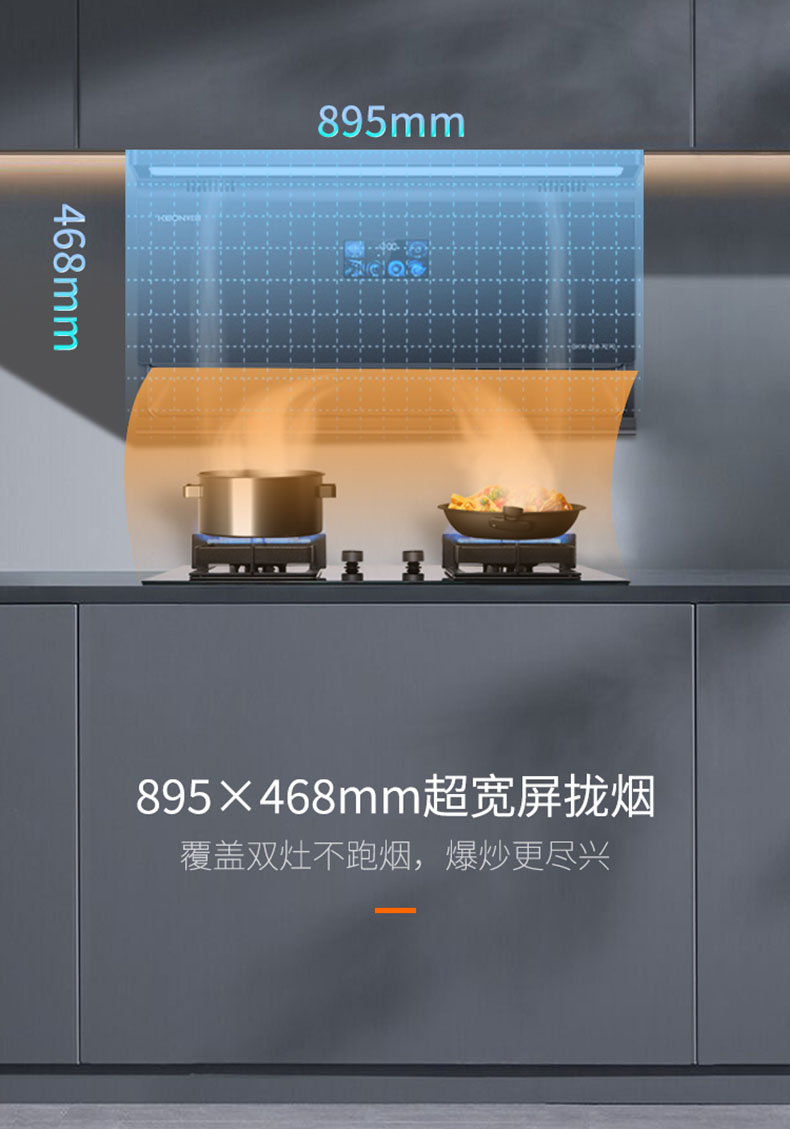 895×468mm超寬屏攏煙,覆蓋雙灶不跑煙