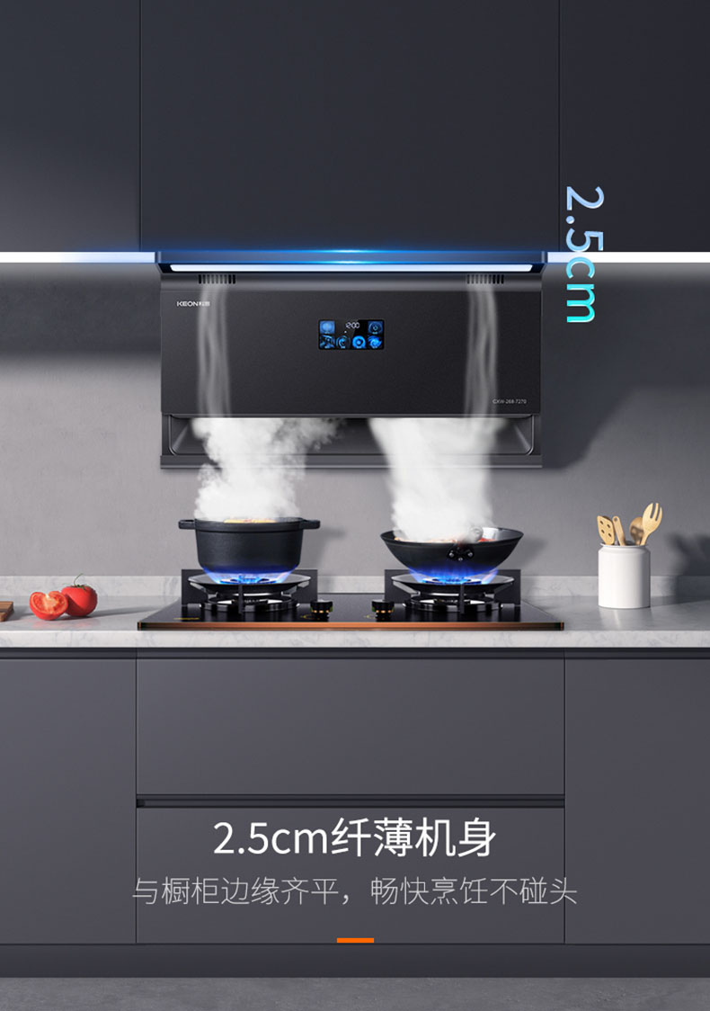 2.5cm纖薄機身,與櫥柜邊緣齊平,暢快烹飪不碰頭