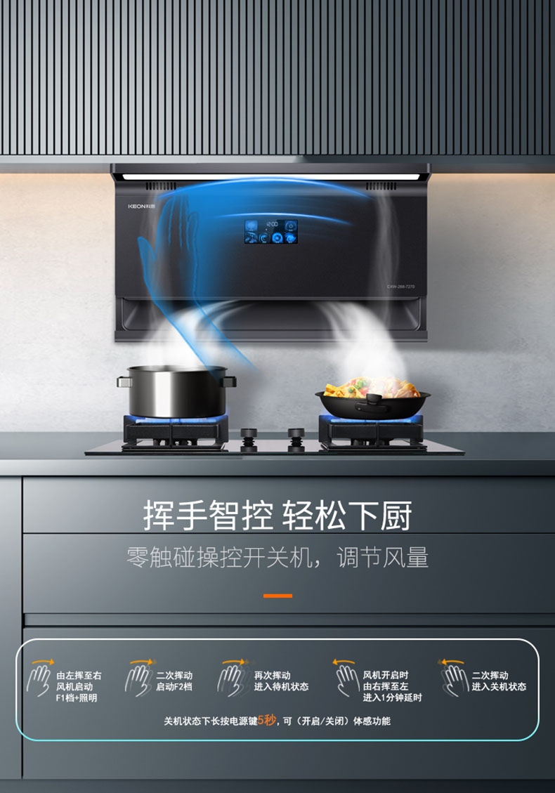 揮手智控,零觸碰操控開關機,調節風量
