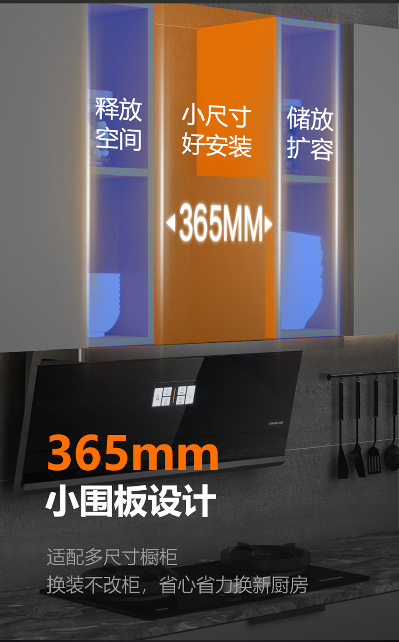365mm小圍板設計,適配多尺寸櫥柜,換裝不改柜