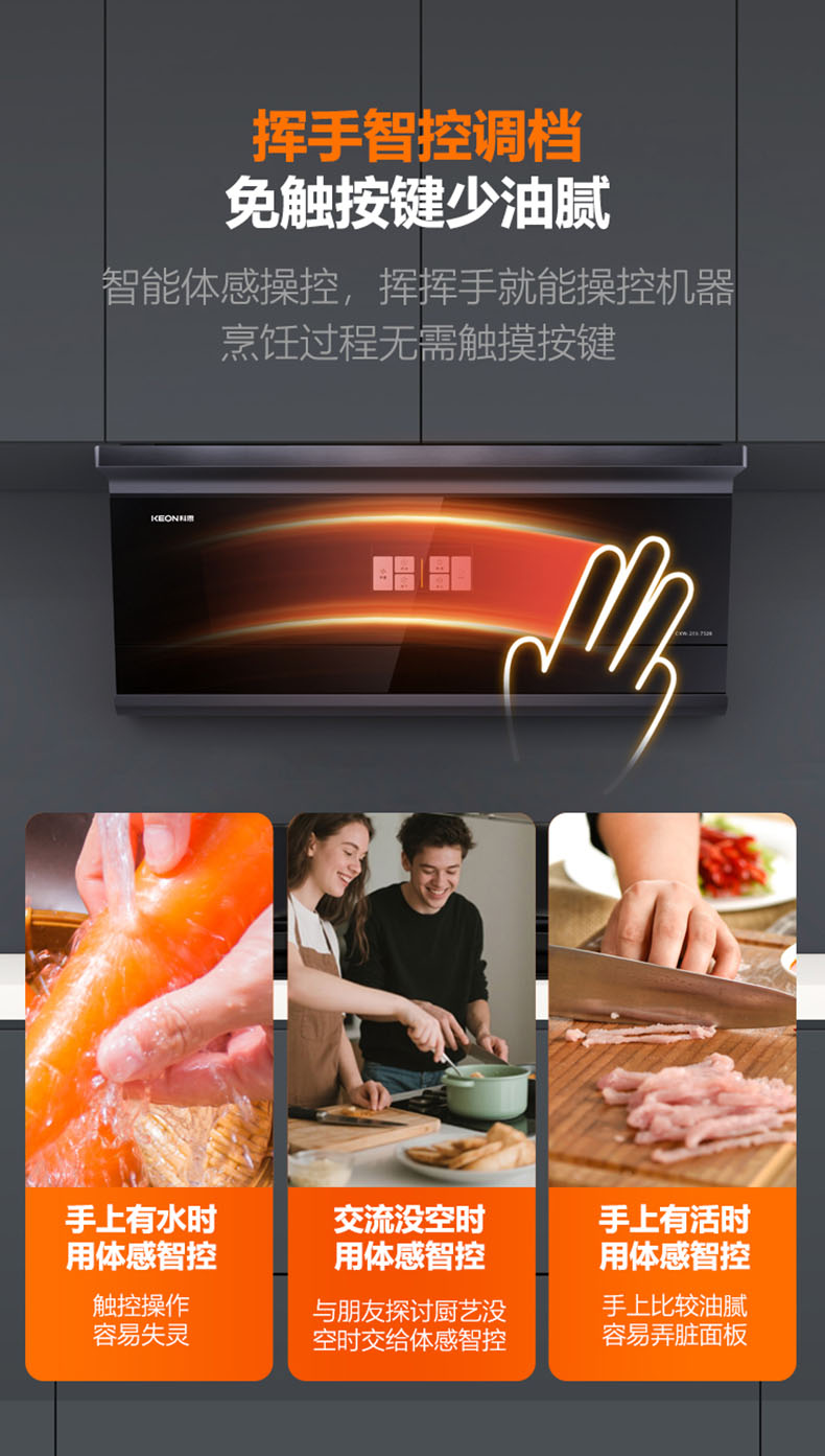 揮手智控,零觸碰調節操作面板,讓油污不沾手