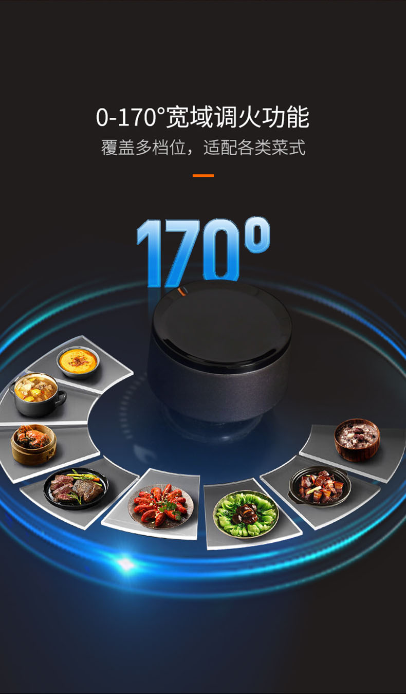 - 0-170°寬域調火功能,覆蓋多檔位,適配各類菜式