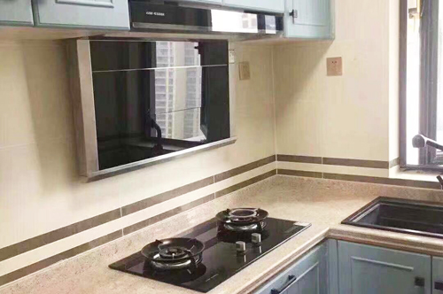 科恩四川經銷商提供的T35煙機和不銹鋼水槽廚房實景
