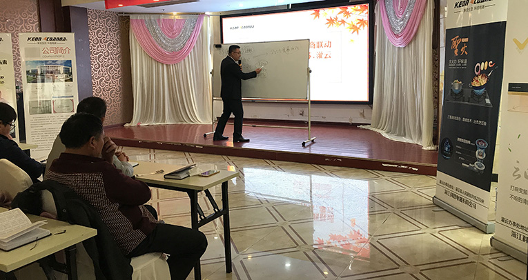 在會議現(xiàn)場,科恩電器育商學(xué)院王校長分析了整個廚電行業(yè)發(fā)展態(tài)勢,闡述了江蘇市場的重要性,全面剖析了灌云的市場情況,鼓勵灌云廣大經(jīng)銷商緊跟公司步伐,聚勢合力共同在促銷,宣傳工作上綜合發(fā)力,并指明了未來工作重心和發(fā)展方向。并以公司多場終端促銷活動作為引子旁征博引,用豐富的語言深刻形象介紹了產(chǎn)品包裝、品牌傳播、門店建設(shè)、渠道建設(shè)與整合營銷等多項實戰(zhàn)技能,以幽默風(fēng)趣的語言,深入淺出的為在場各位經(jīng)銷商傳授了最深刻的經(jīng)驗。